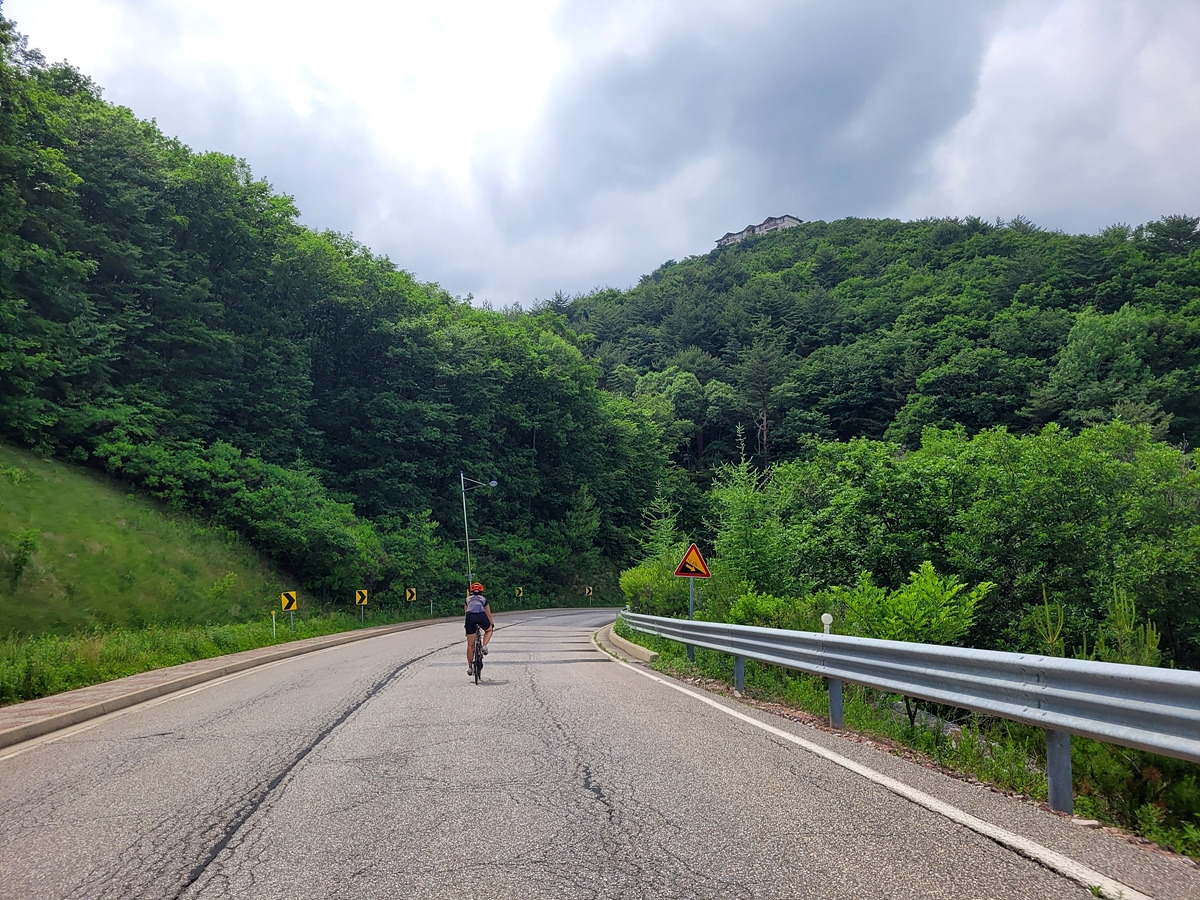 도로 상태가 썩 좋지는 않지만 달리는 데는 문제없는 오르막길이 시작된다.