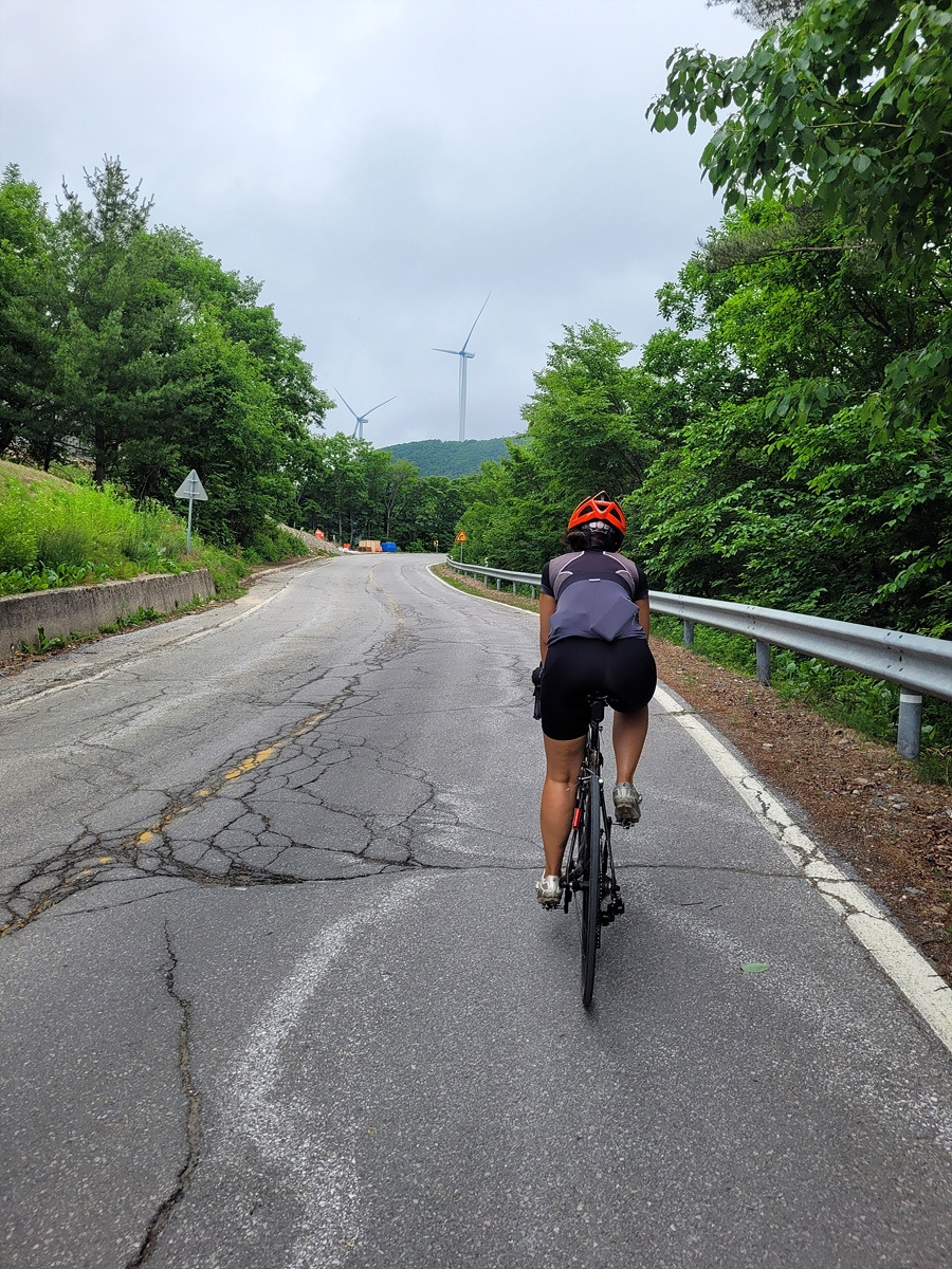 한참 건설 중인 풍력발전기가 보인다. 예전에는 그 수가 많지 않으니 신기해 보였지만 이제는 산마다 너무 많이 세워둔 듯하다.
