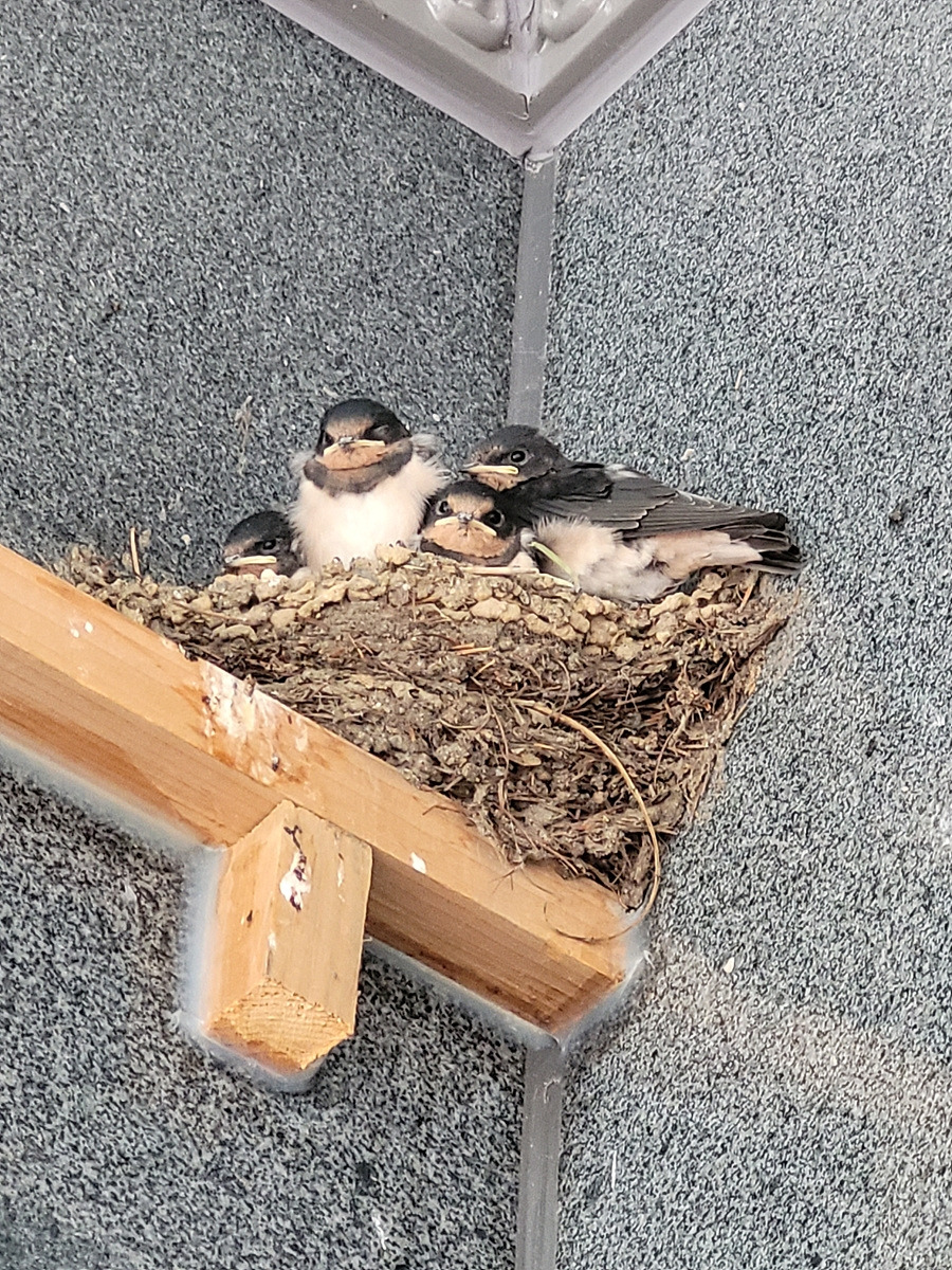 지난번에 보았던 제비 새끼들이 벌써 엄청 커서 둥지가 감당이 안 된다.