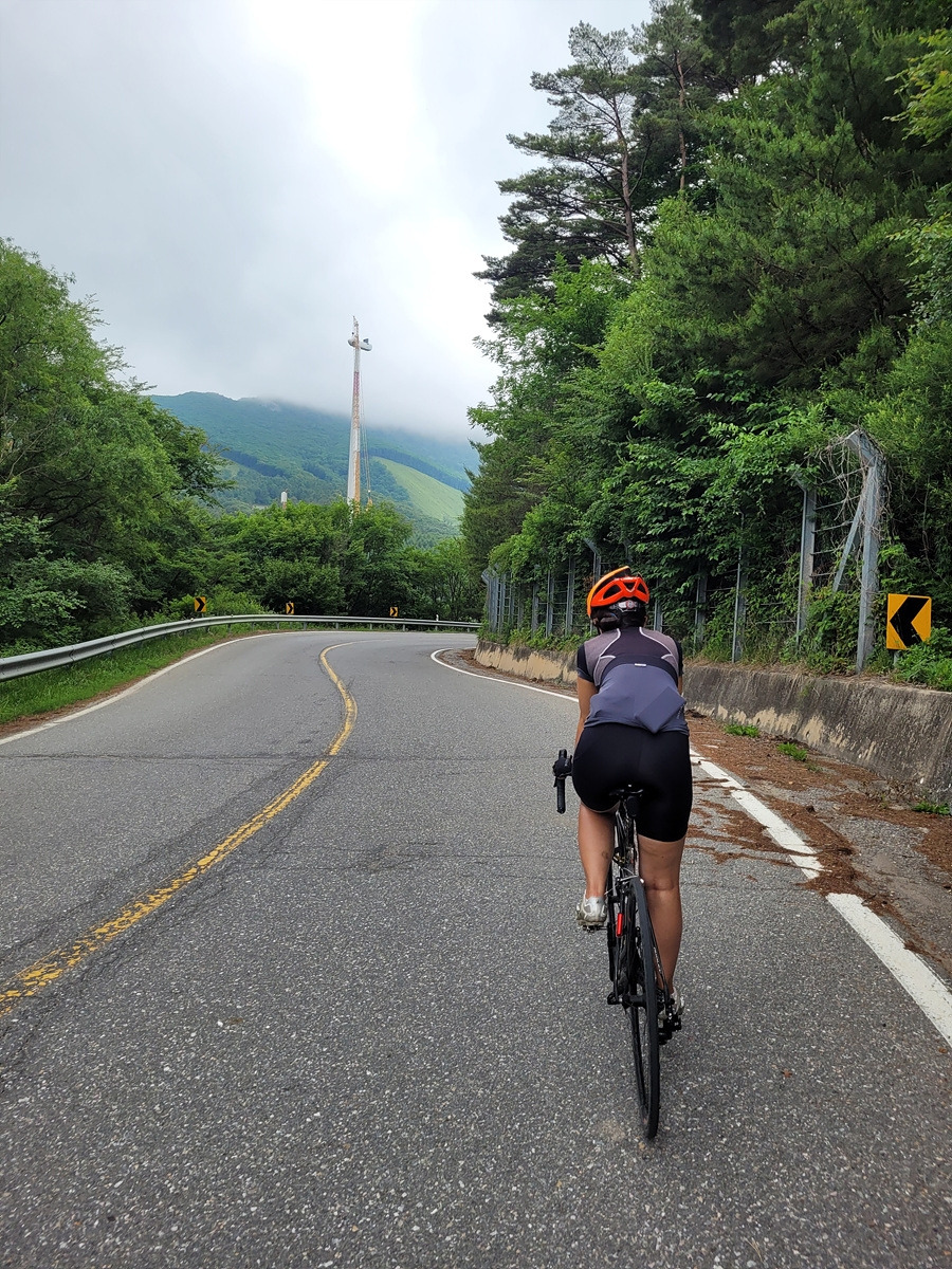 멀리 만항재가 보이기 시작한다. 처음 오고 오르막길에 익숙지 않은 초보자들은 여기가 제일 힘들다.