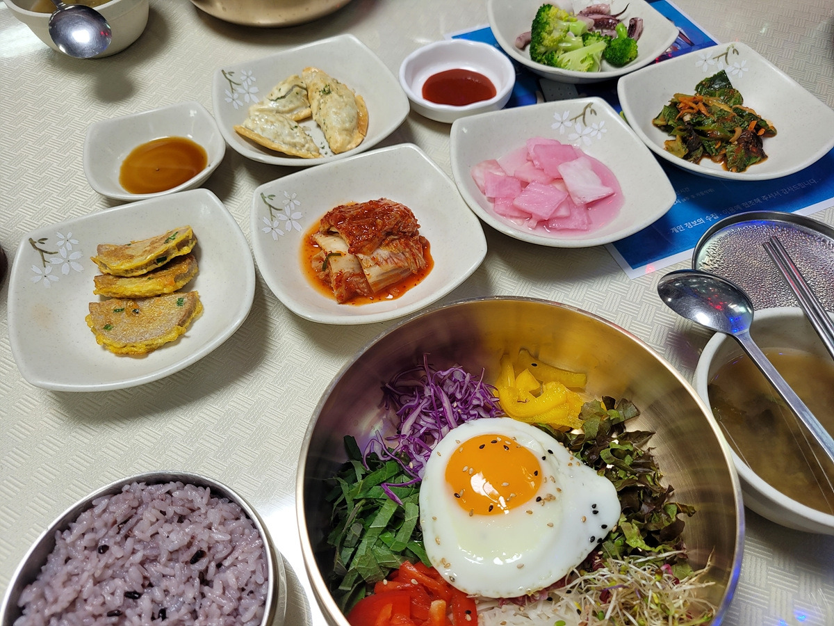어평재 휴게소 식당은 나름 맛집이다. 태백에서 이른 시간에 아침을 맛있게 먹을 수 있는 집은 귀하다. 오늘은 육회비빔밥을 먹는다.