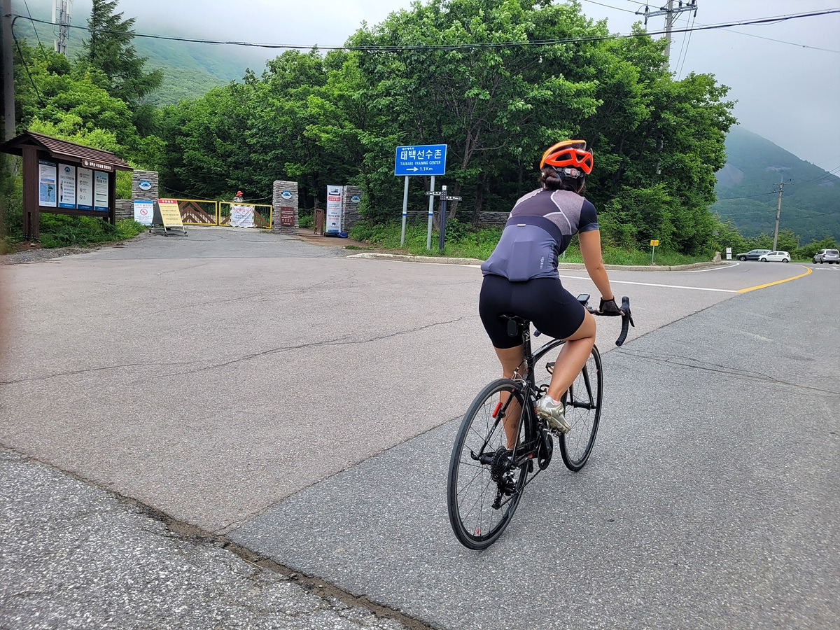 아주 약한 오르막길을 슬슬 올라가면 함백산 입구가 나온다. 함백산은 자전거로 갈 수 있는 우리나라에서 가장 높은 곳이었는데 국립공원 영역이 되면서 정상까지 갔다가는 출입금지 과태료를 낼 수 있다. 우리는 출입금지가 되기 전에 두 번 올라갔다 왔다.