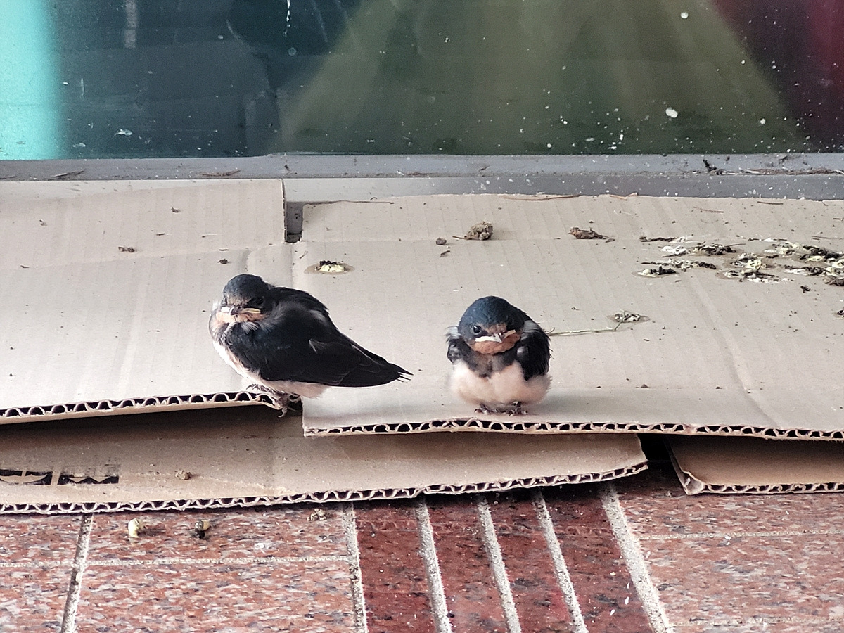 밥을 먹고 나와보니 제비 새끼들이 벽 구석에 앉아있다. 이소할 때가 되었는지 날갯짓 연습을 하나보다. 사람들을 보면서 자란 녀석들이라 그런지 사람을 보고 겁내진 않는다. 제비 새끼를 이렇게 가까이서 보는 것도 드문 일이다.