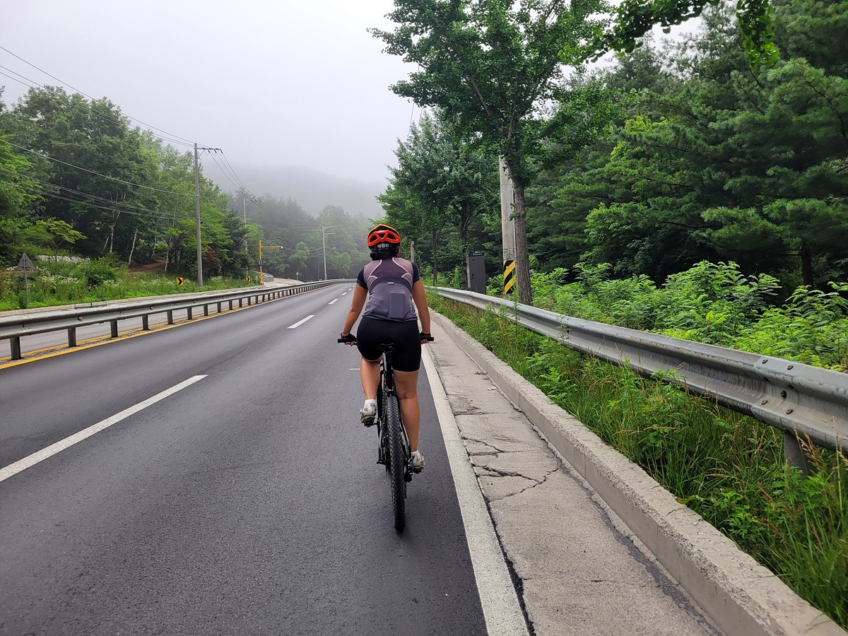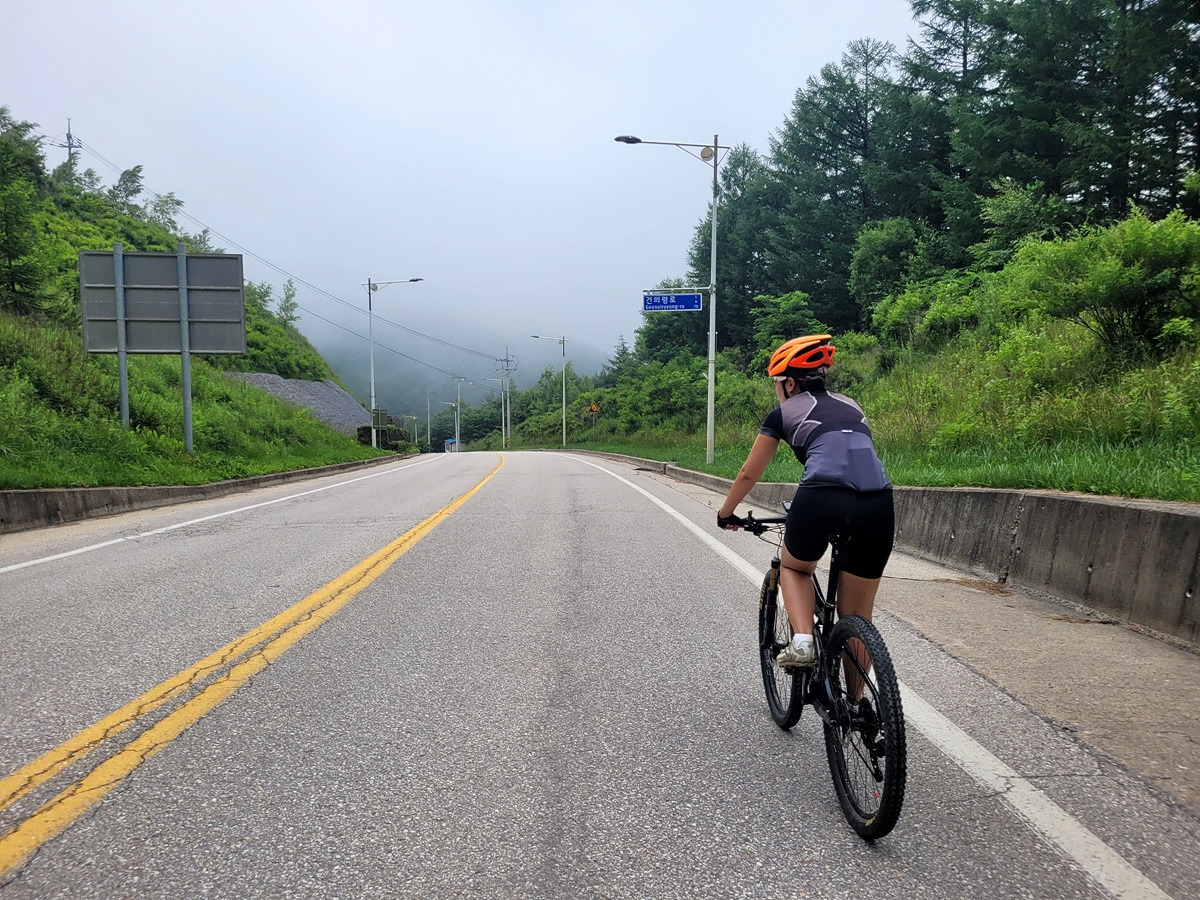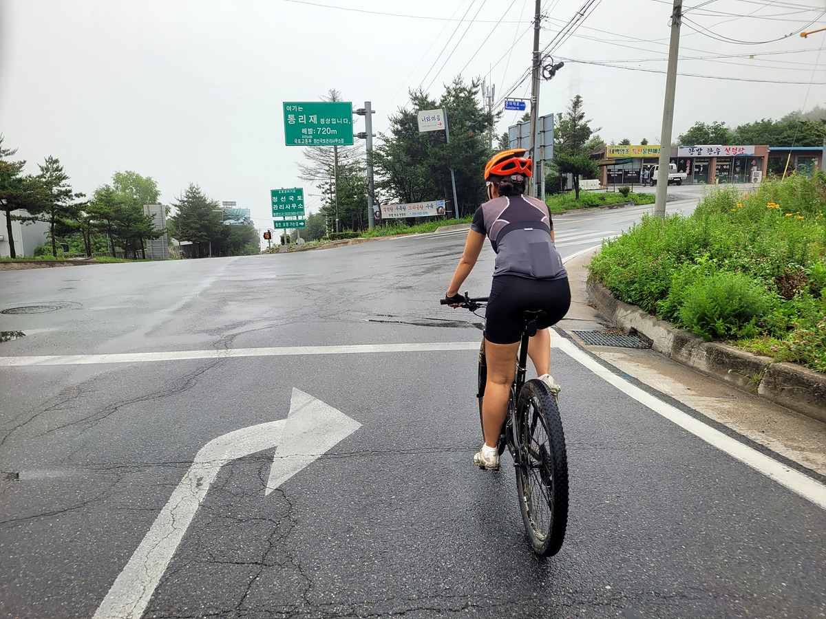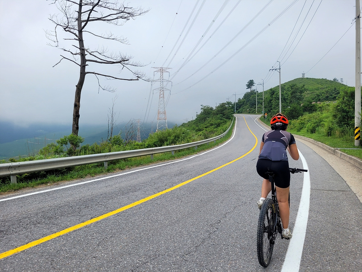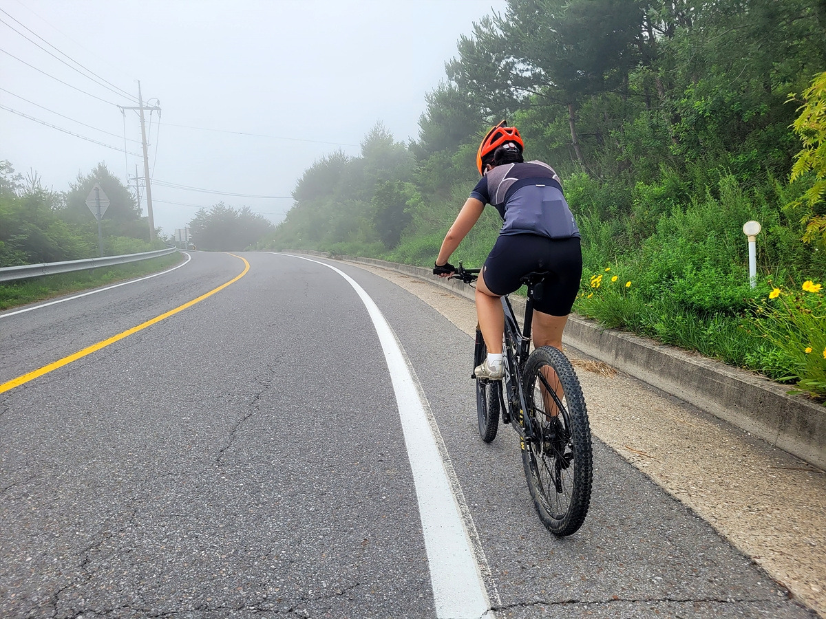 구름이 넘어가는 태백산맥 한 가운데 태백 시내에서 출발이다. 건의령길이 쉽지 않을 것 같으니 지니님은 MTB로 간다.