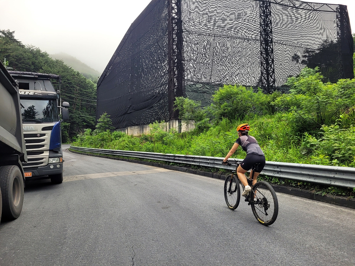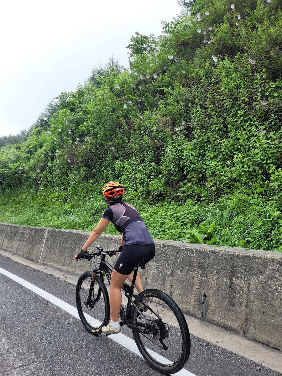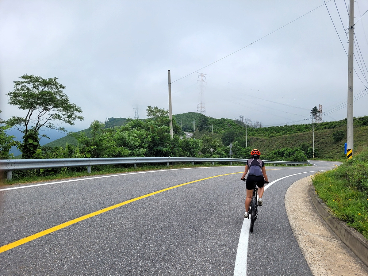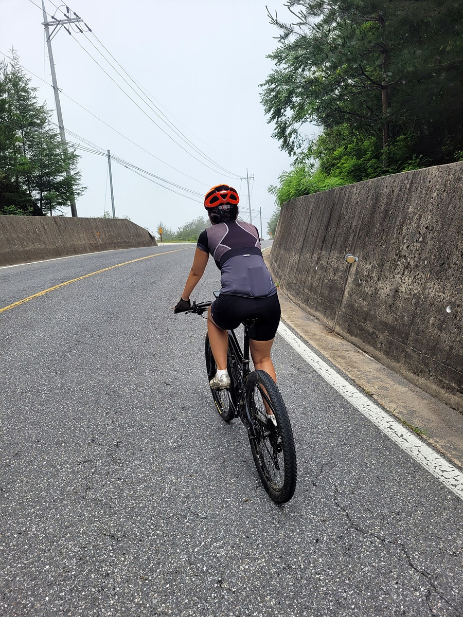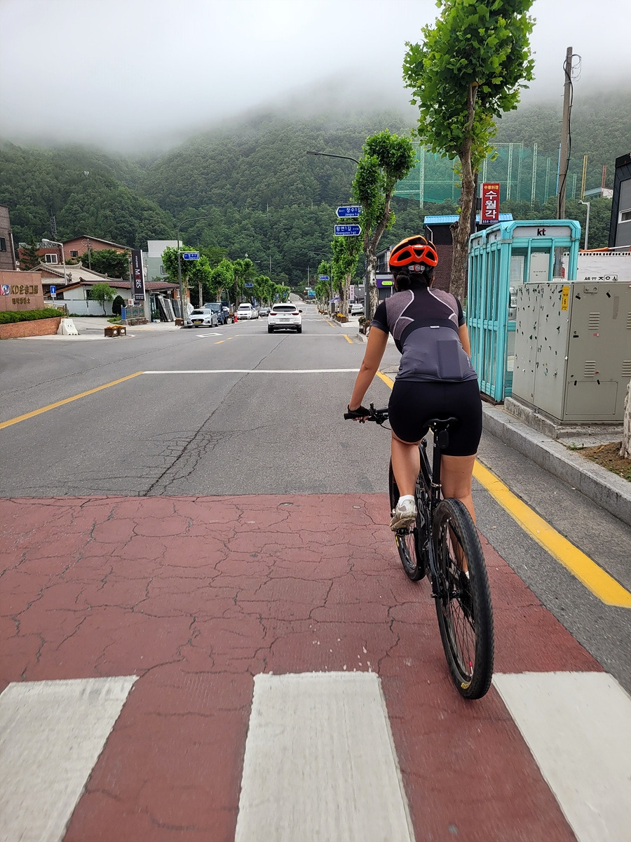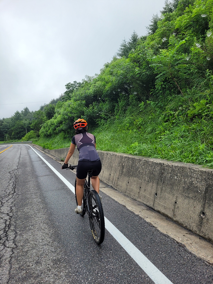 구름이 넘어가는 태백산맥 한 가운데 태백 시내에서 출발이다. 건의령길이 쉽지 않을 것 같으니 지니님은 MTB로 간다.