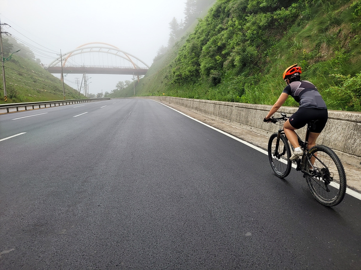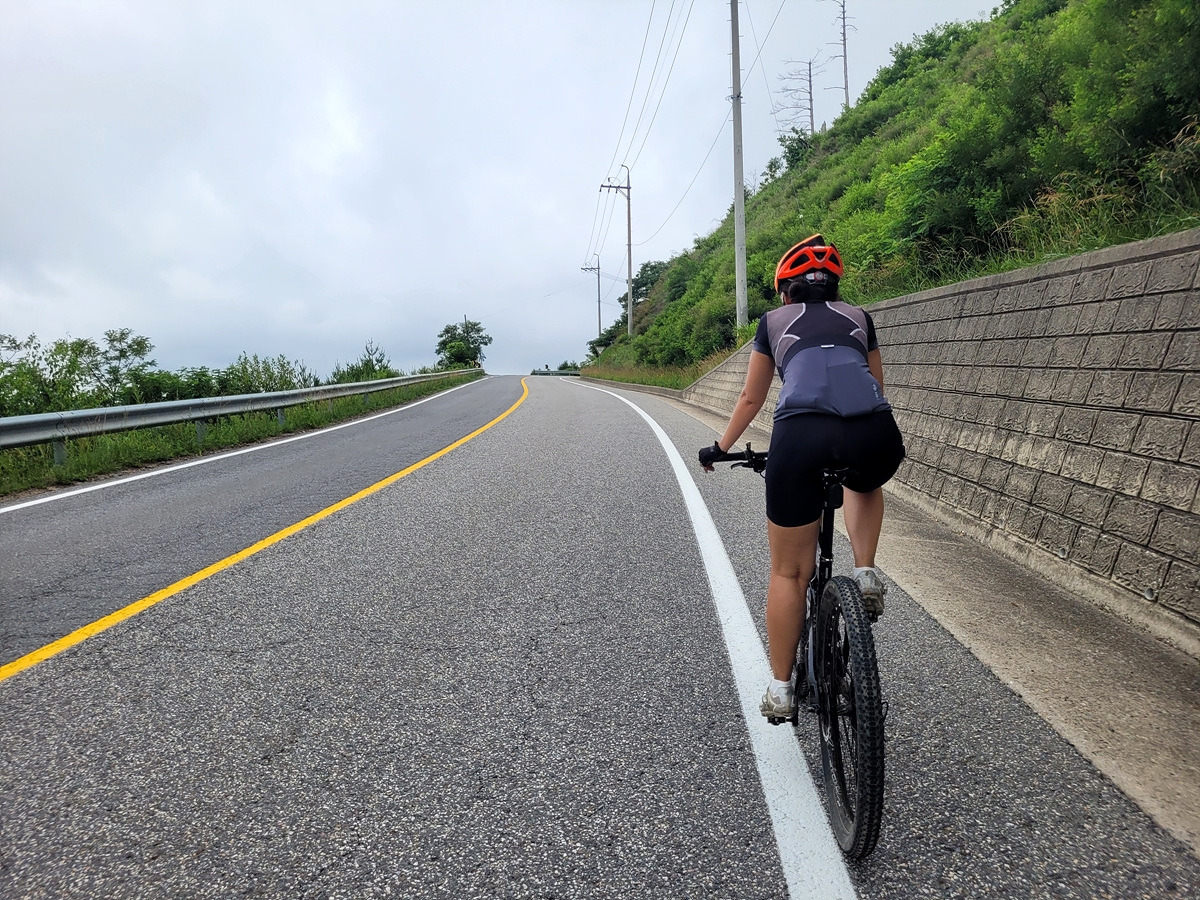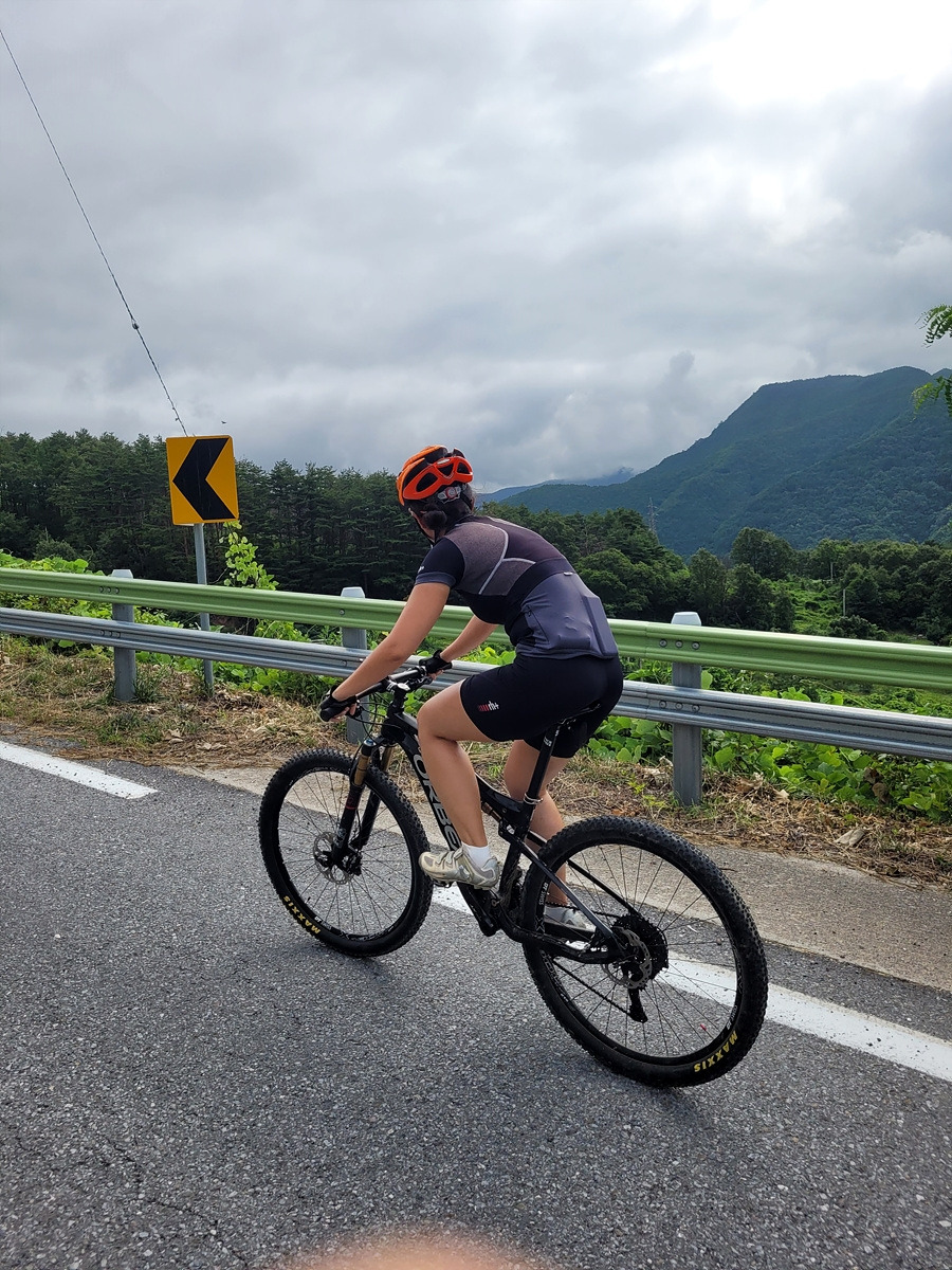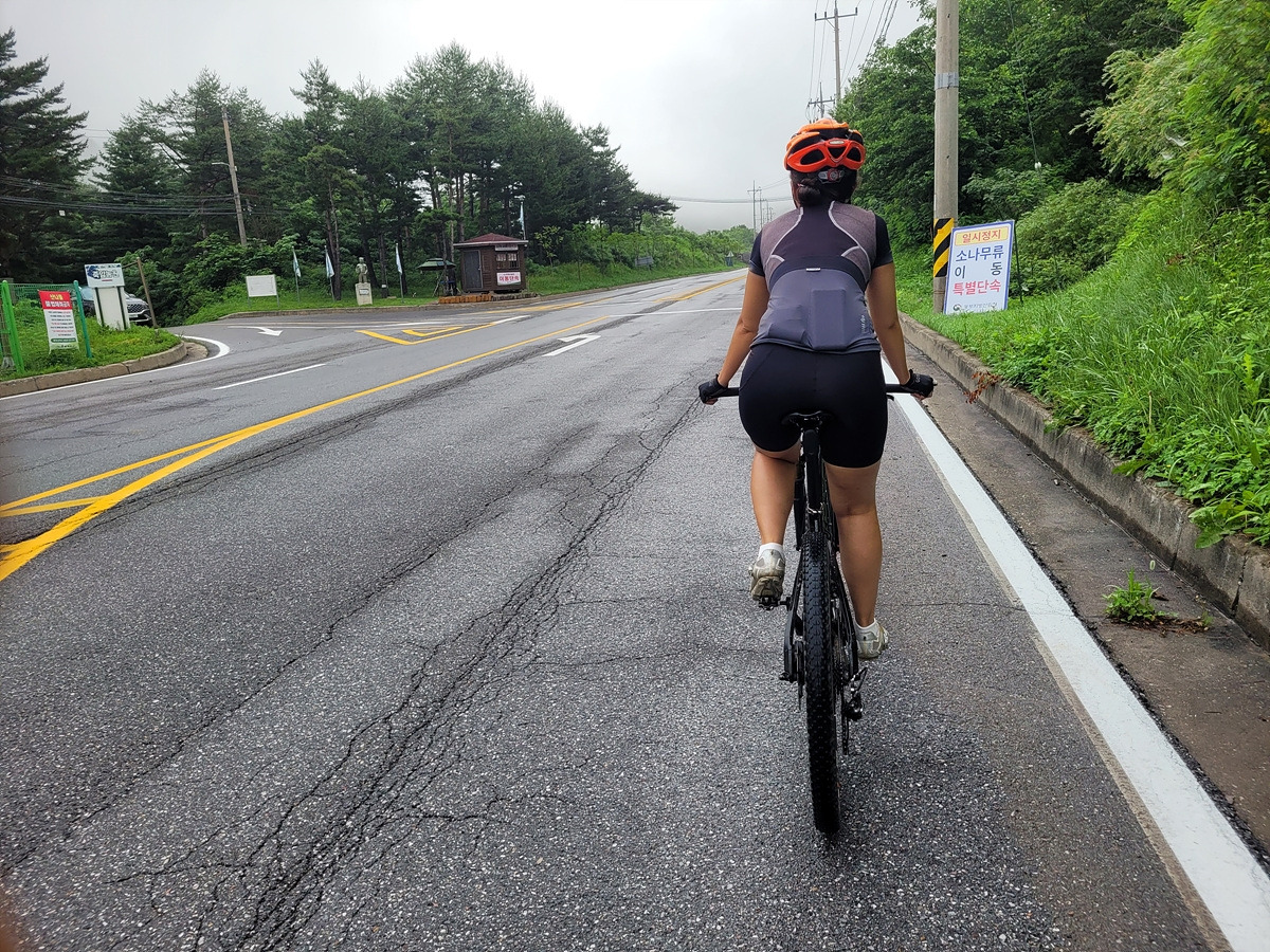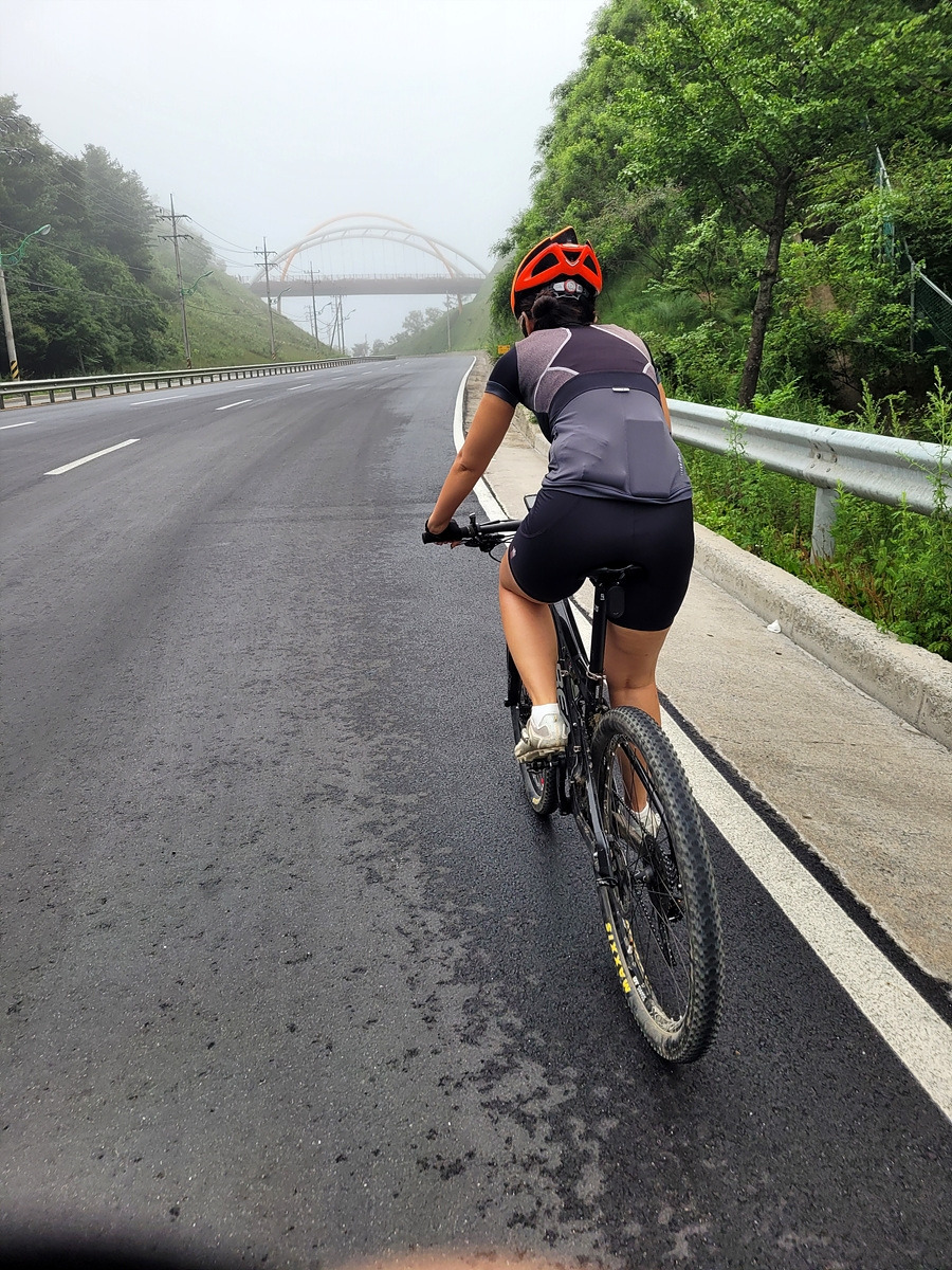 구름이 넘어가는 태백산맥 한 가운데 태백 시내에서 출발이다. 건의령길이 쉽지 않을 것 같으니 지니님은 MTB로 간다.