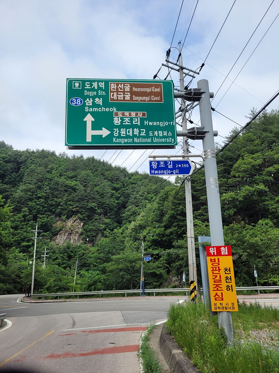 정거리재를 쭉 내려가면 삼거리가 나오는데 지니님이 강원대 도계캠퍼스 방향으로 갔다가 돌아온다. 강원대 도계캠퍼스는 우리나라에서 가장 깊은 곳에 있는 대학이다.