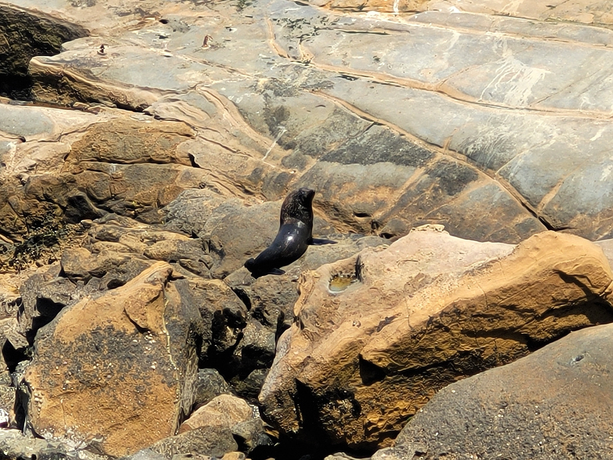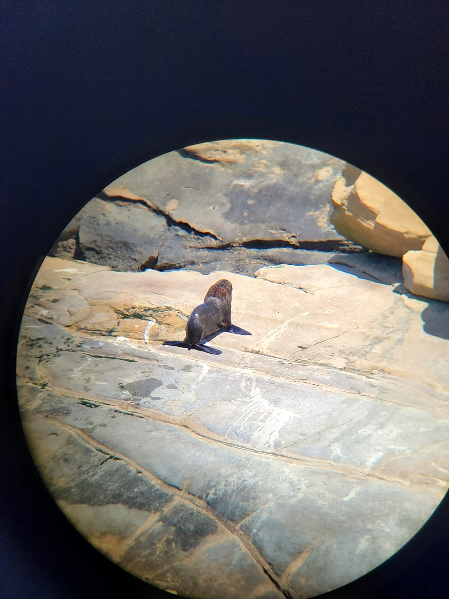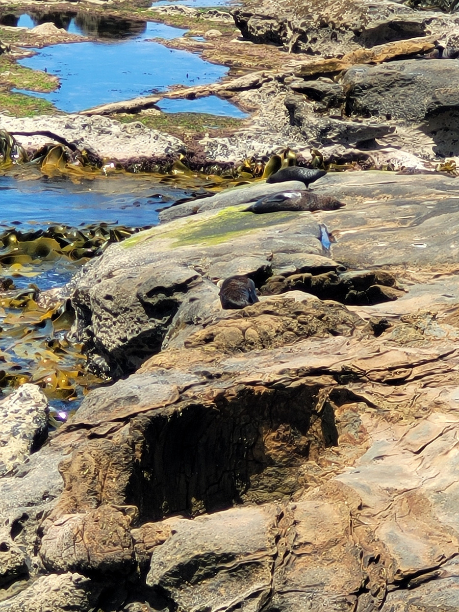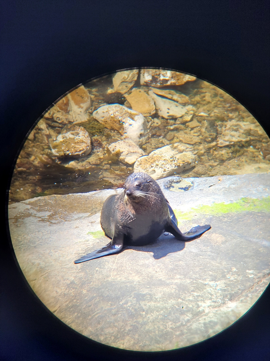 내려가는 길이 있어서 좀 더 가까이 갈 수도 있지만 멀찍이서 쌍안경으로 보고 핸드폰 줌 촬영으로 사진을 찍는다. 가까이에서 보기엔 샌디에이고 라호야 비치 쪽이 더 좋은 것 같다. 여기는 복슬복슬한 Fur seal들이 산다.