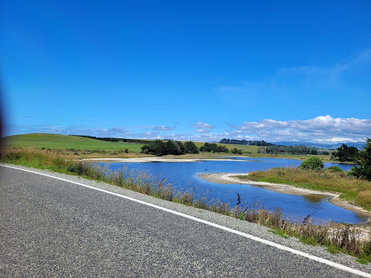 한쪽은 양들이 풀을 뜯는 초원, 다른 한쪽은 푸르른 바다. 그리고, 차가 별로 안 다니는 조용한 도로. 내가 원하던 뉴질랜드 풍경이 여기에 있다.
