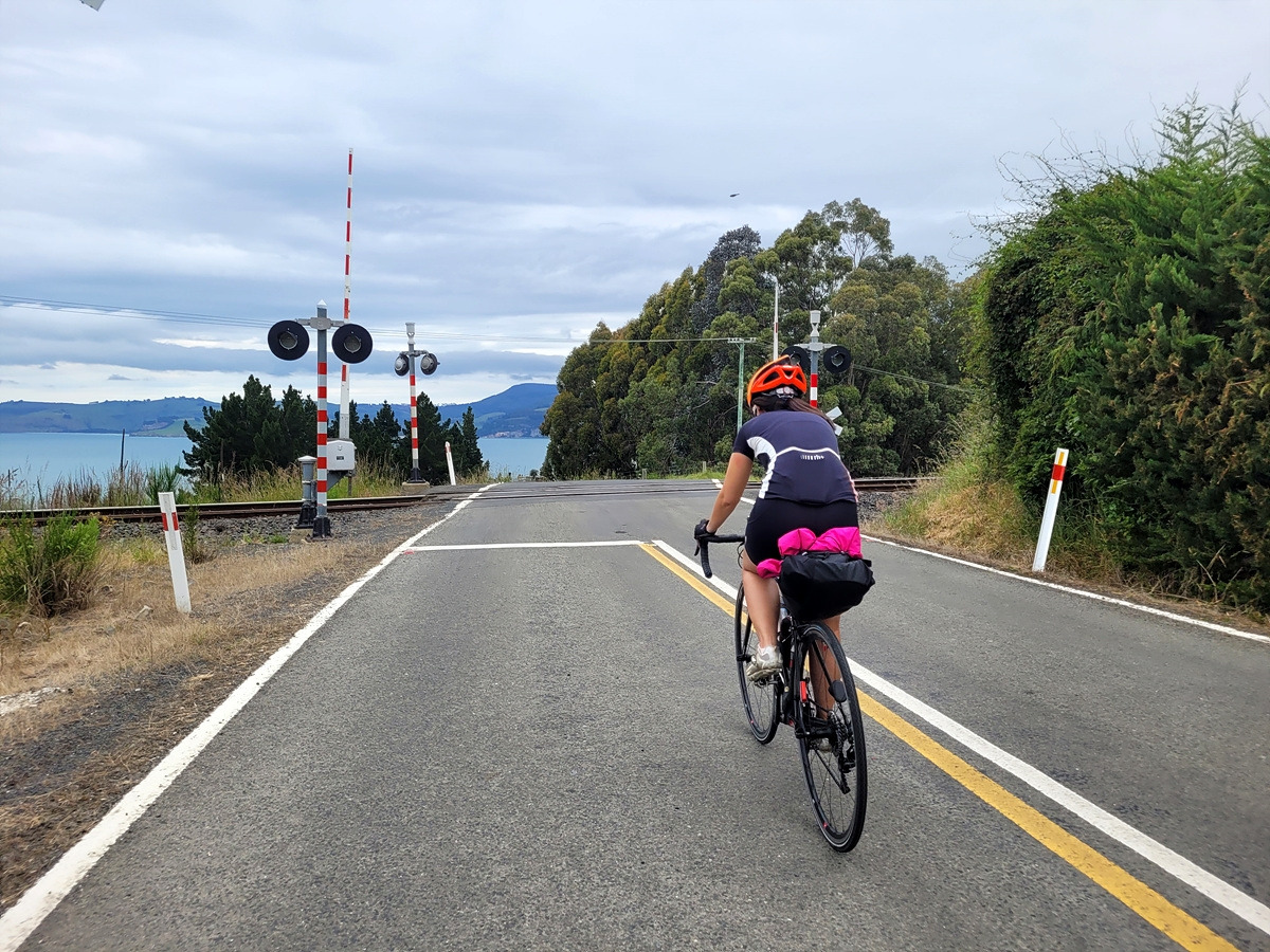 아직 Seacliff는 안 나타났는데 내리막을 쭉 내려간다. 기찻길도 이리로 지나가는지 철도 건널목을 두 번 만난다.