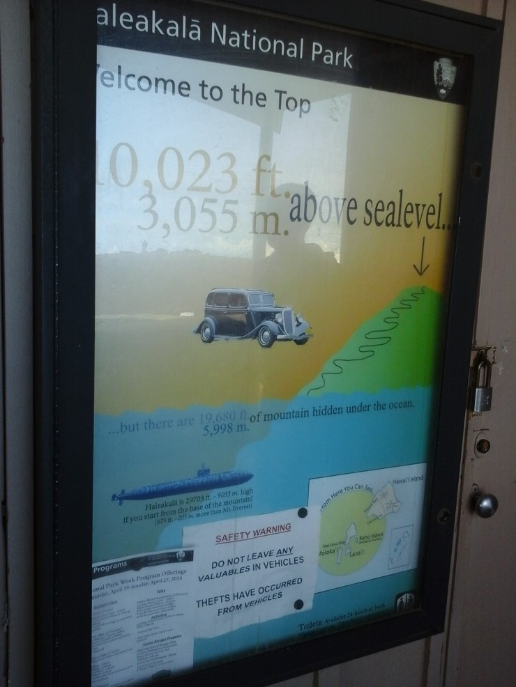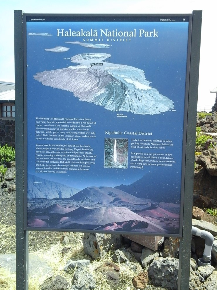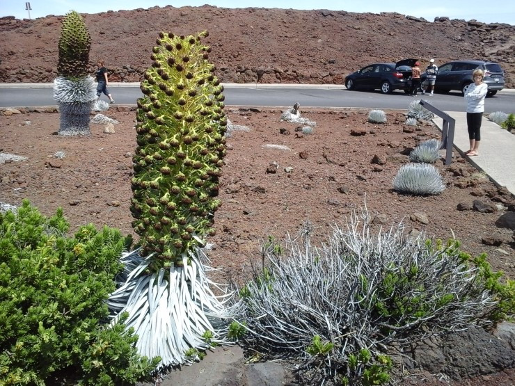 할레아칼라 산 꼭대기에서만 자란다는 특이한 식물인 아히나히나(Haleakala silversword)가 주차장 한 가운데 심어져 있다. SF 영화에 나오는 외계 생물 같은 느낌이다.