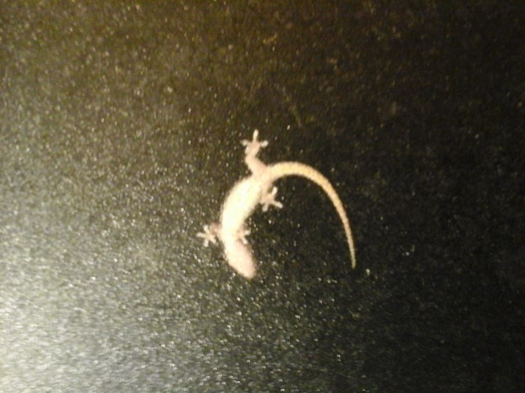하와이에는 도마뱀이 정말 많다. 여기도 한 마리가 화장실 유리창 너머에 붙어있다가 불빛을 보고 모이는 벌레들을 잡아먹는다. 도마뱀들이 모기나 해충을 잡아먹기 때문에 주민들도 도마뱀을 싫어하지 않는다.