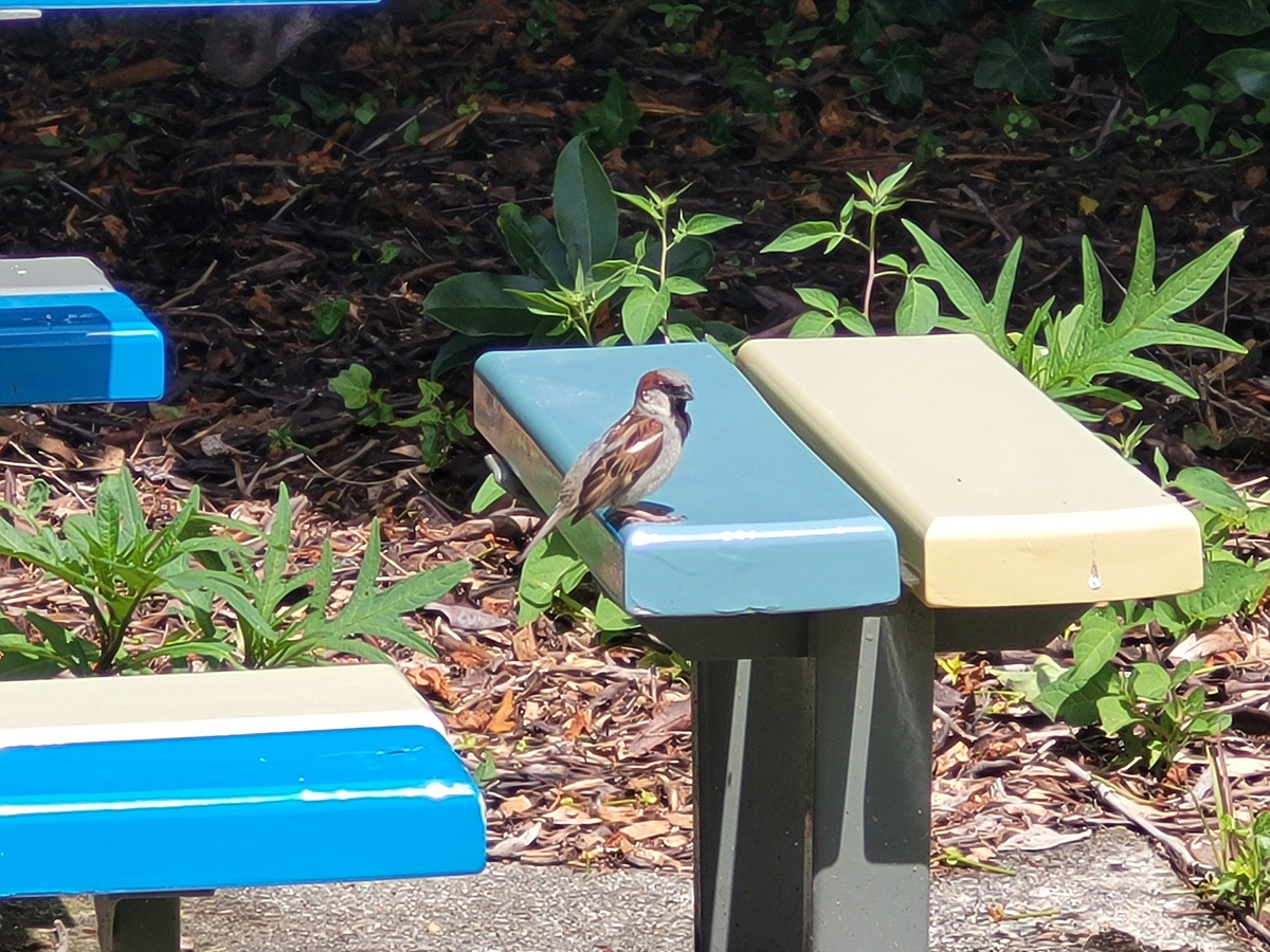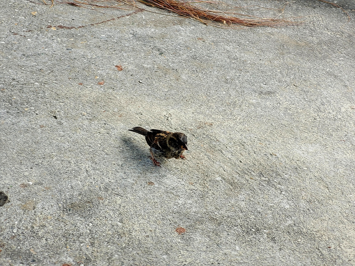 배부르게 먹고 있으니 근처의 참새들이 몰린다. 일부러 주는 것은 아니고 실수로 흘리면 눈치를 보면서 살금살금 다가와서 물어간다.