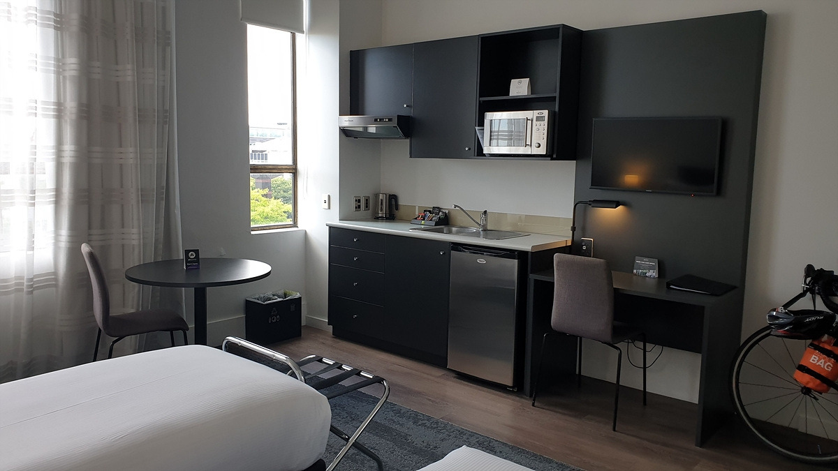 연말 중의 연말이다보니 문을 연 숙소가 얼마 없는데 그나마 위치 좋은 호텔을 예약했다. 뉴질랜드의 숙소 중에 자전거를 방에 들일 수 있게 해주는 곳이 많지 않은데 여기는 자전거를 보관할 장소가 없는지 방에 두도록 해준다.