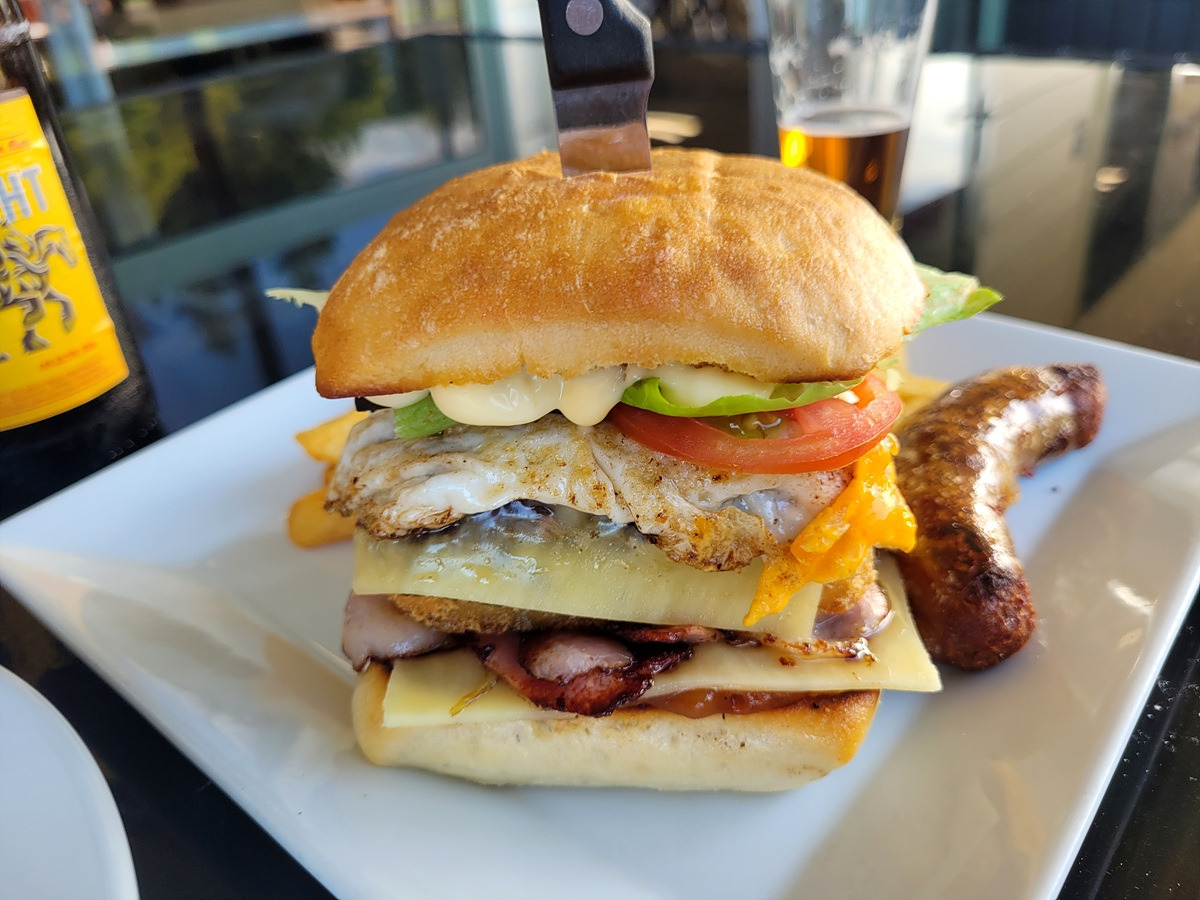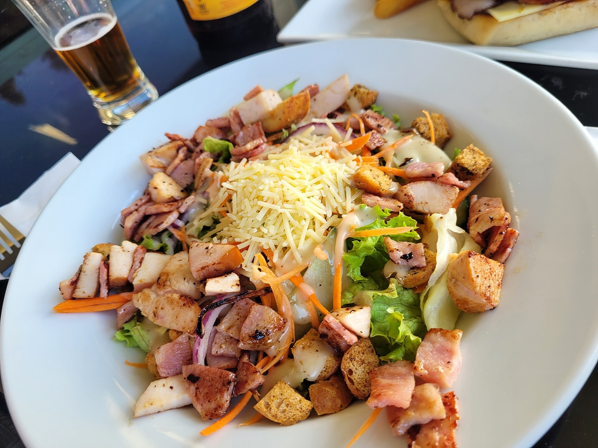 시골 구석의 식당에서 대단한 것을 바라진 않고 햄버거랑 치킨 샐러드 그리고 유명하다는 소시지를 하나 주문했는데... 햄버거가 생각한 것보다 대단한 것이 나왔다. 사람들로 북적대는 정신없는 식당에서 직원들이 손님 주문 하나하나를 기억하고 빠르게 대응해 줘서 그런지 별 문제 없이 식사를 받았다.