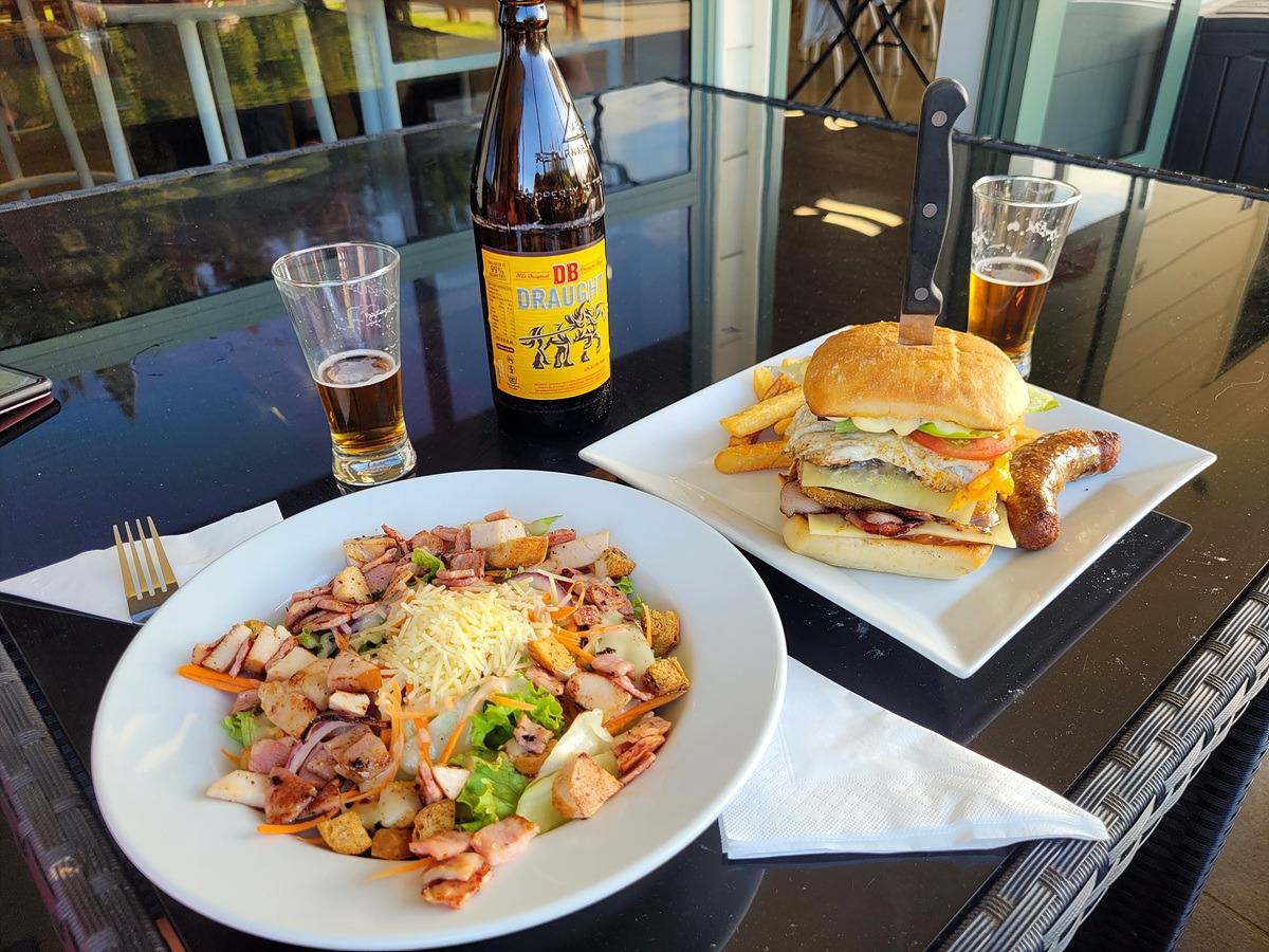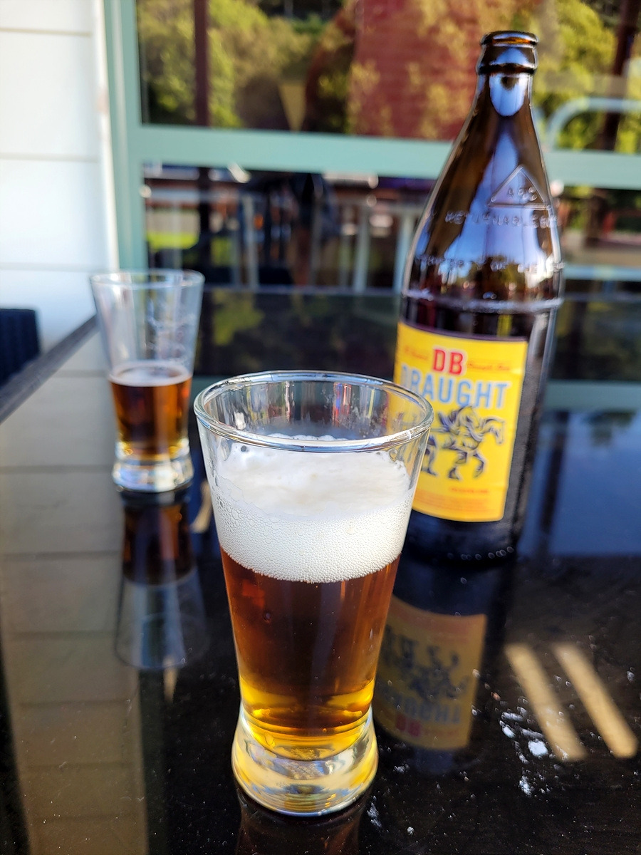 식당에 도착했는데 온 동네 사람들이 모여서 축제 중이다. 정신이 없다. 그래도 밥 먹을 데는 여기 뿐이다. 그늘에 앉고 싶은데 축제로 사람이 바글거리는 식당에서 지붕도 없는 야외석을 간신히 차지했다. 더운 날씨에 땀 흘리면서 자전거를 탔다면... 당연히 맥주를 마셔야 해갈이 된다. 이 DB draught는 Export와 더불어 우리가 자주 마시는 맥주다. 내 발음이 안 좋은지 식당에서 이 맥주를 얻어내려면 상당한 노력을 해야 한다.