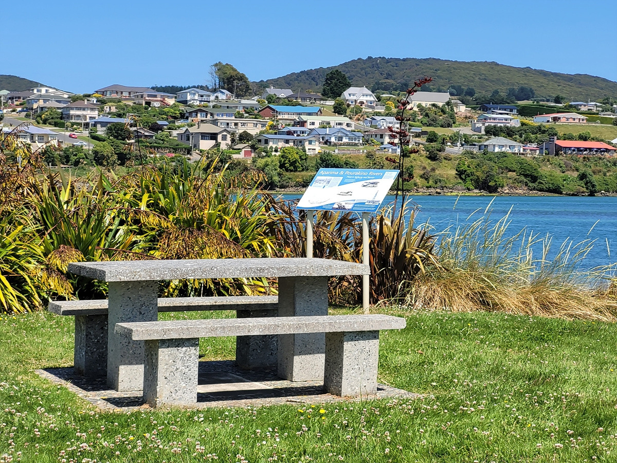 리버턴/아파리마는 이름처럼 아파리마 강과 또 다른 강인 포우라키노 강이 만나 바다로 나가기 직전에 호수를 이루는 곳이다. 이 호수의 경치를 바라보며 점심을 먹으니 나름 나쁘지 않다. 이 마을은 뉴질랜드에서 가장 오래된 마을 중에 하나라는데 역사가 200년도 안 된다.