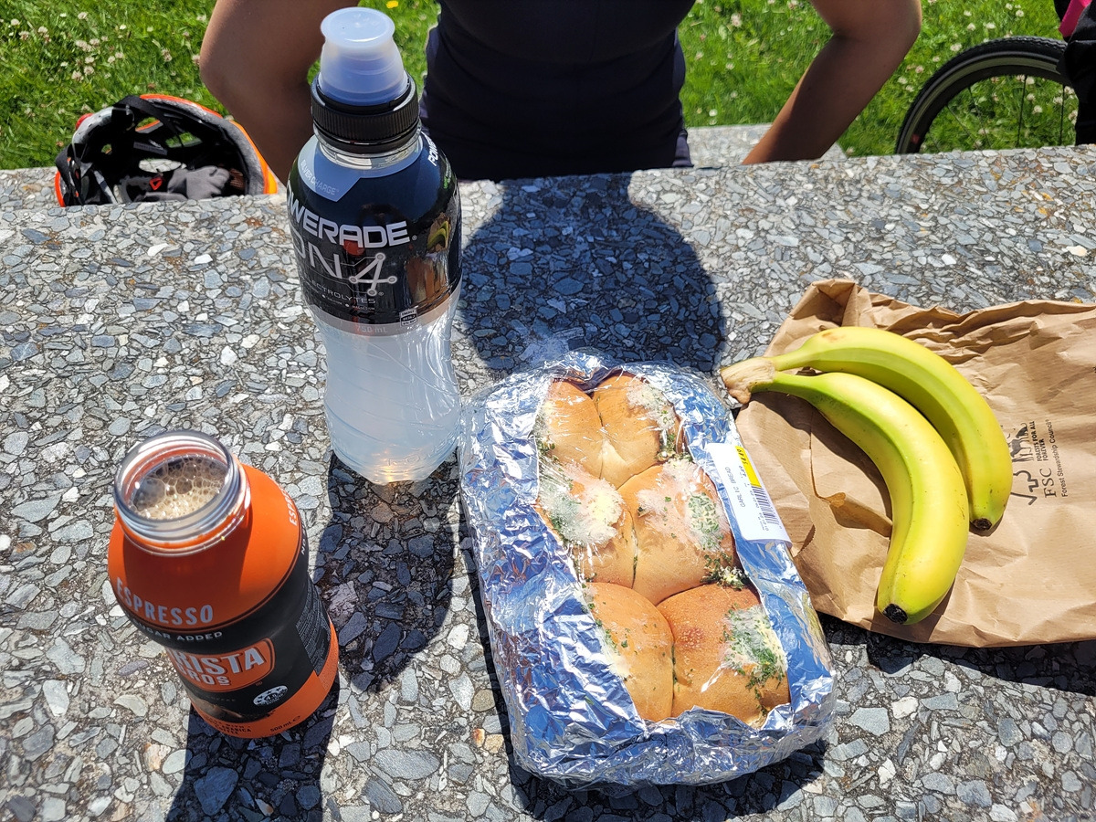 빵과 바나나 그리고 이온음료... 이 정도면 투아타페레까지 달릴 수 있겠지.