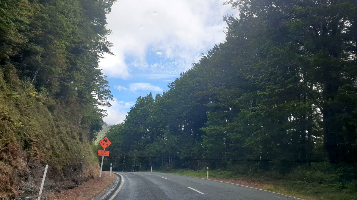 온통 물이 떨어지는 컴컴한 긴 터널을 지나면 구불구불한 급경사 내리막길이 시작된다. 여기서 케아라는 새들이 터널의 신호를 기다리는 사람들이 주는 음식물을 먹고 산다.