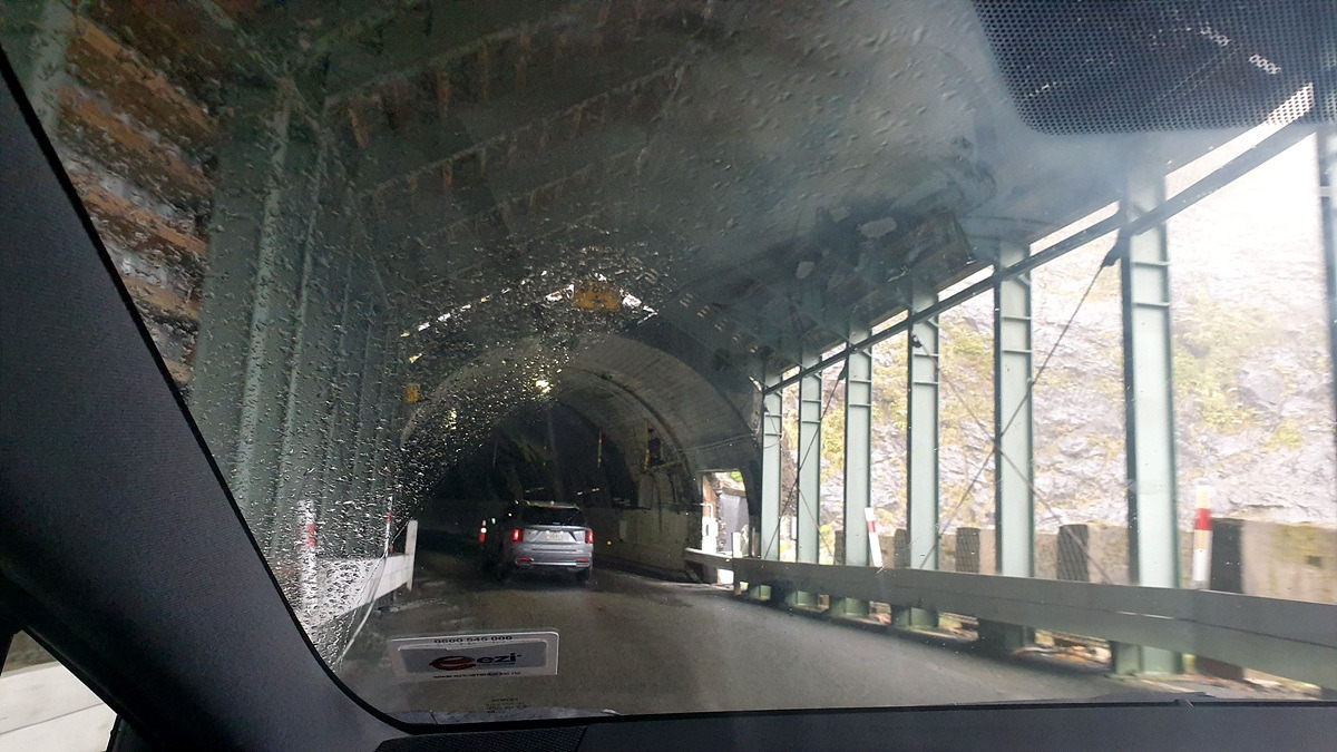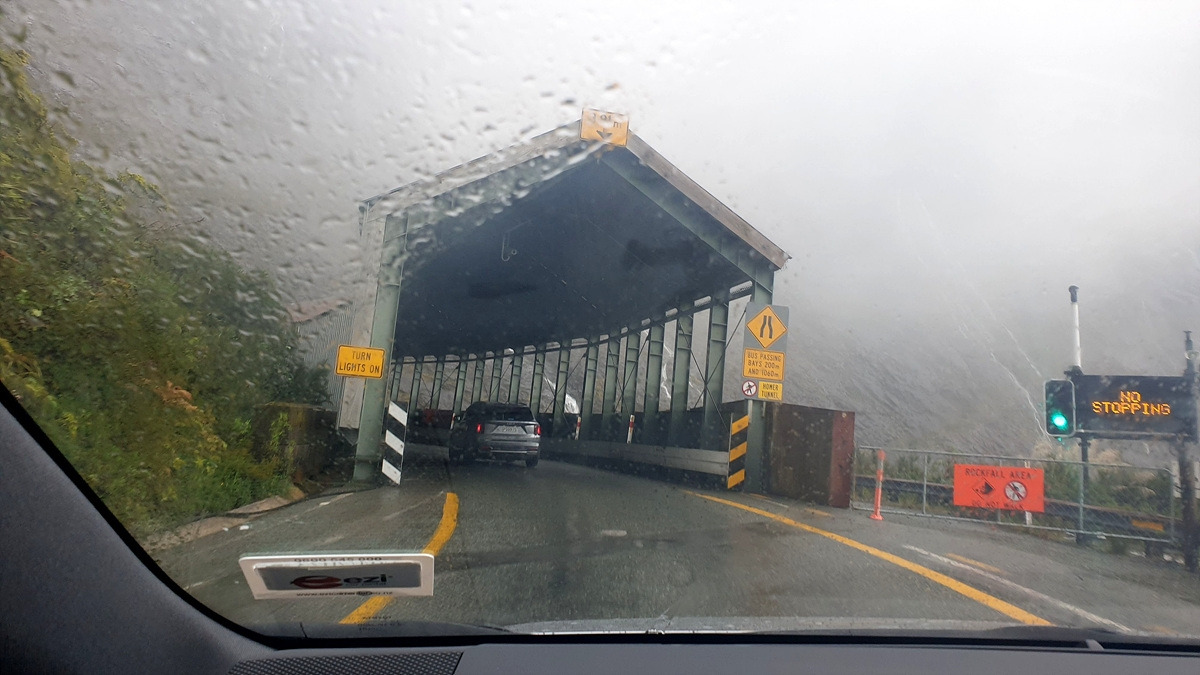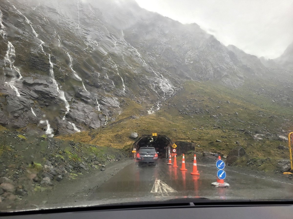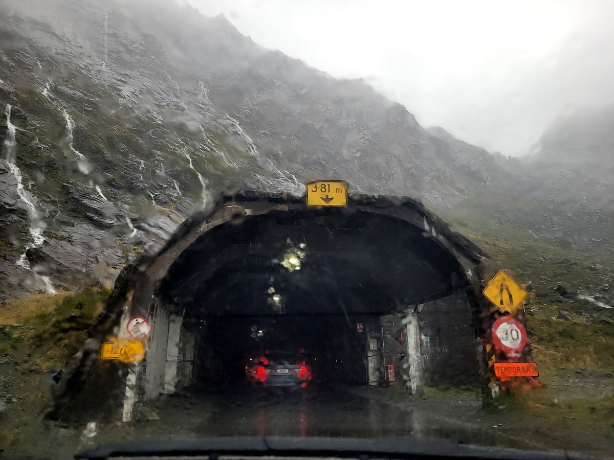 길고 긴 일차로 터널이라 청신호가 들어오면 출발해서 갈 수 있다. 그래서 차들이 많이 밀린다. 그리고 터널이 길다 보니 밀포드 사운드 방향으로는 내리막임에도 불구하고 자전거는 한 신호 안에 터널을 반 정도밖에 갈 수 없어 중간에 반대편에서 오는 차들을 피해야 한다. 그러니, 자전거는 통행이 힘들다. 이런 사정으로 터널 입구에 안전요원이 있는 경우엔 자전거 통행을 못하게 한다고도 한다. 만약 자전거로 터널을 지나 넘어간다 하더라도 다시 돌아올 때는 내리막길이던 이 길이 획득고도 900m의 오르막길로 변하기 때문에 더더욱 자전거로는 지나가기 힘든 곳이다. 또한 여기 오는 편도 120km 구간에 보급할 곳도 거의 없으니 우리는 자전거로 오는 것을 포기하고 렌터카를 선택한 것이다.