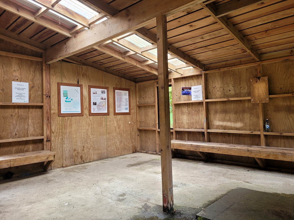 대피소라고 해봐야 우리나라의 정자만도 못한 지붕과 밴치가 있고 근처에 웨카가 사람들이 먹을 걸 주는 걸 기대하면서 기웃거린다. 바닥은 온통 물바다다.