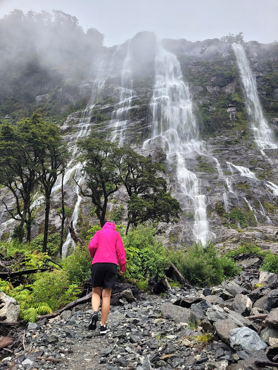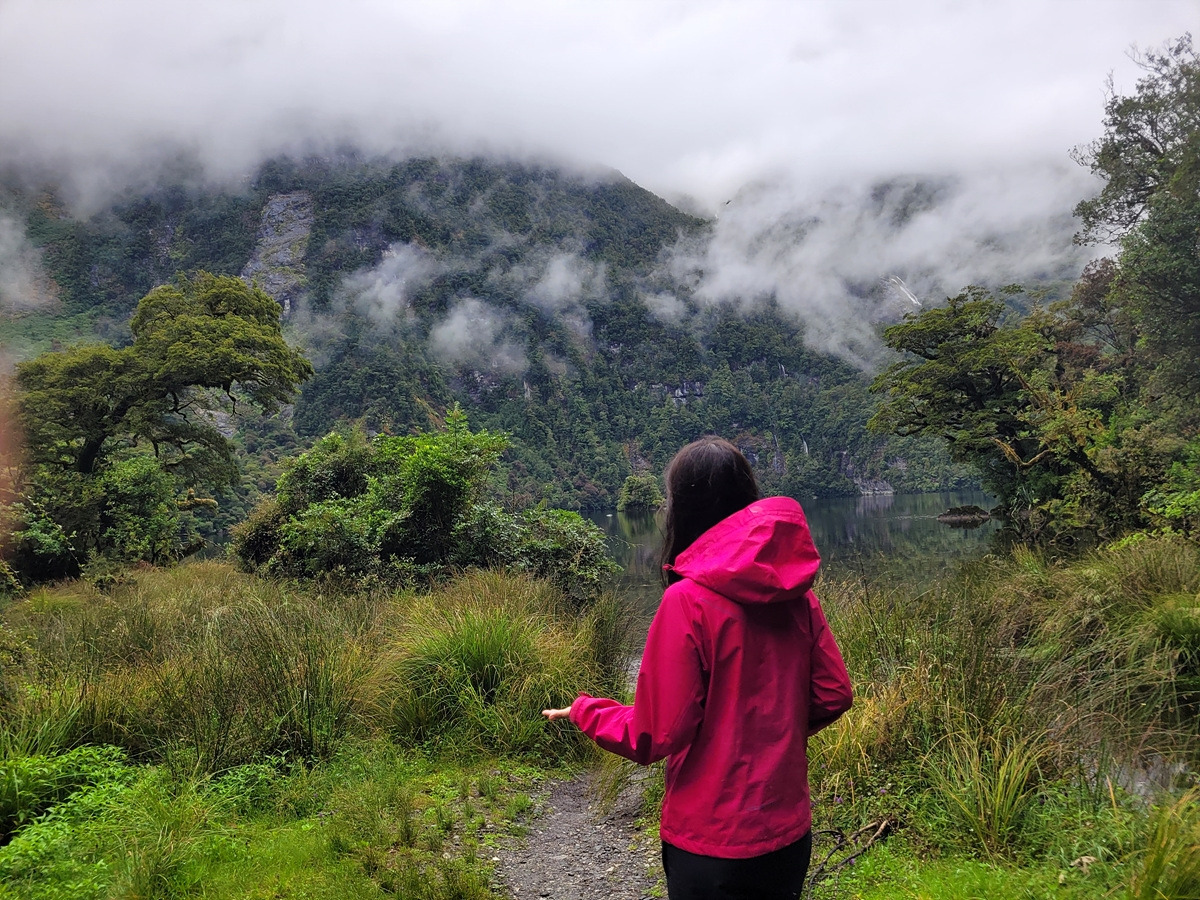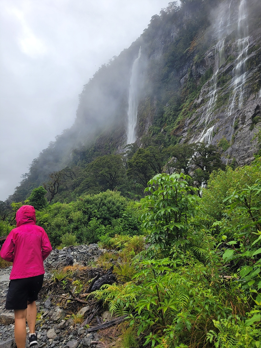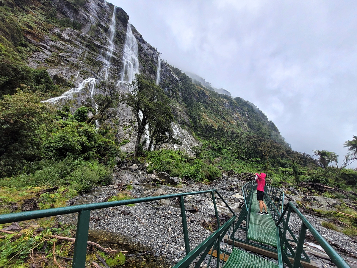 밀포드 트랙 트래킹을 조금 맛만 보았다. 3박 4일로 진행되는 54km의 트래킹 코스 중에 고작 5km를 왕복해서 걸었다. 비까지 내린 날씨였지만 그리 심하지 않은 비라서 큰 문제가 되지는 않았다. 오히려 비로 인해 생긴 무수한 폭포들의 향연은 대단한 경치였으며 비를 머금은 오래된 숲을 더욱 선명하게 느낄 수 있었다. 지니님도 지금까지 걸어본 트래킹 코스 중에 가장 좋았다고 한다.