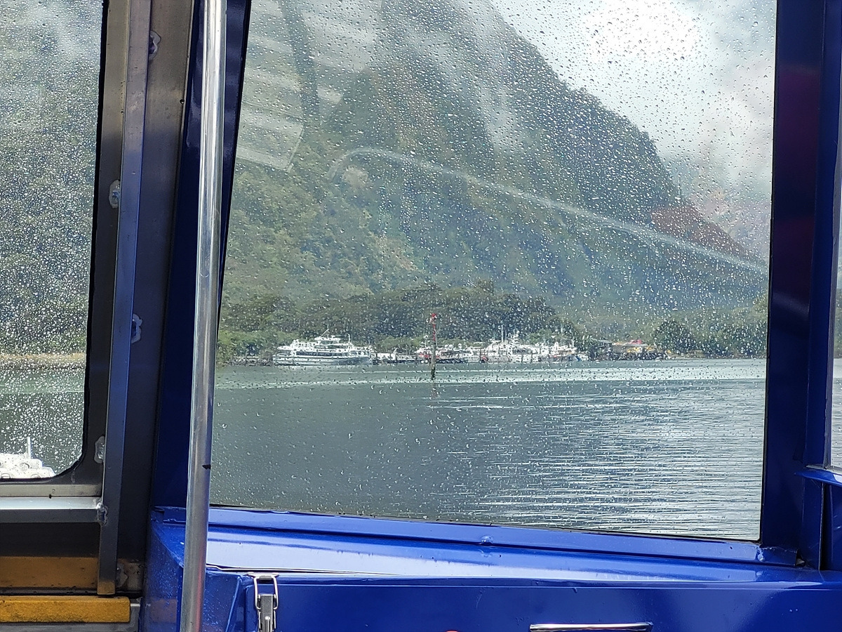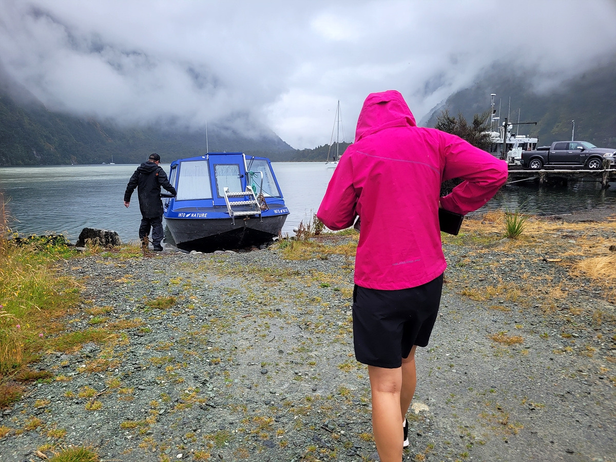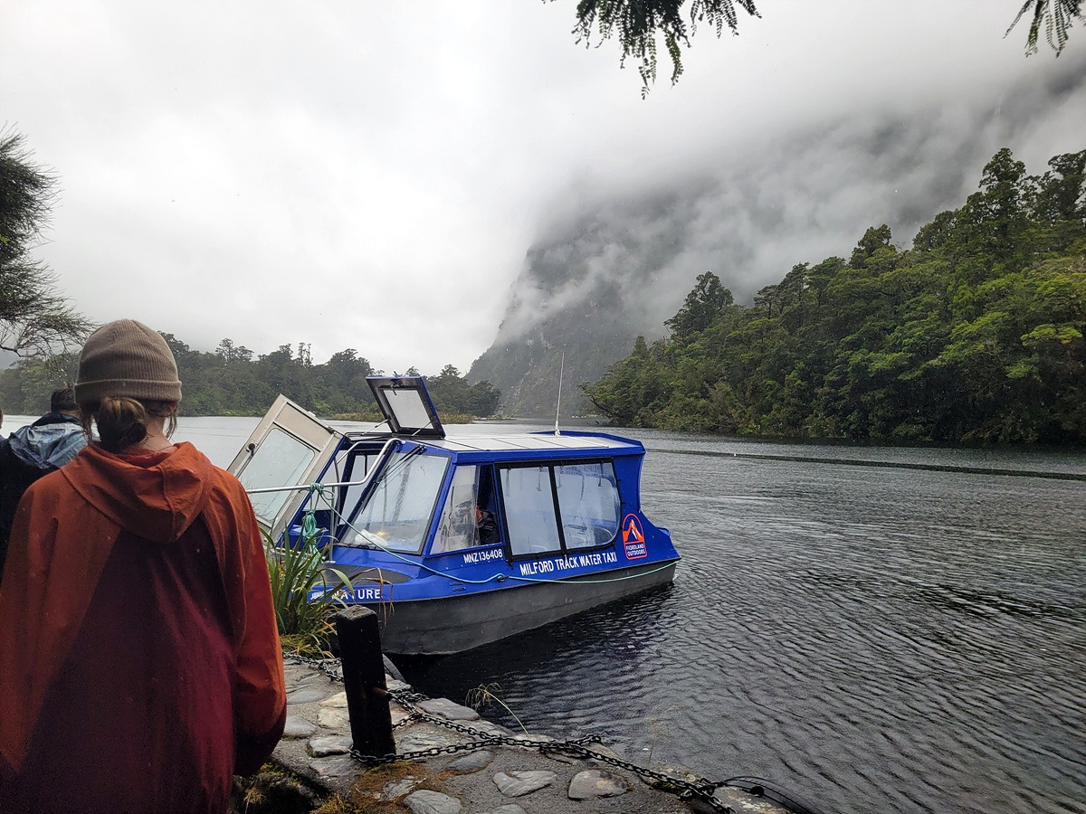 우리를 내려주면 여기서 기다리던 사람들을 싣고 돌아간다. 밀포드 사운드 트래킹은 허가제로 운영되니 여기 있는 사람들은 사전에 허가가 된 사람들이다. 트래킹 복장을 갖추고 비와 피곤에 절어 있는 이 사람들은 3박 4일의 긴 트래킹을 마치고 돌아가는 사람들이다.