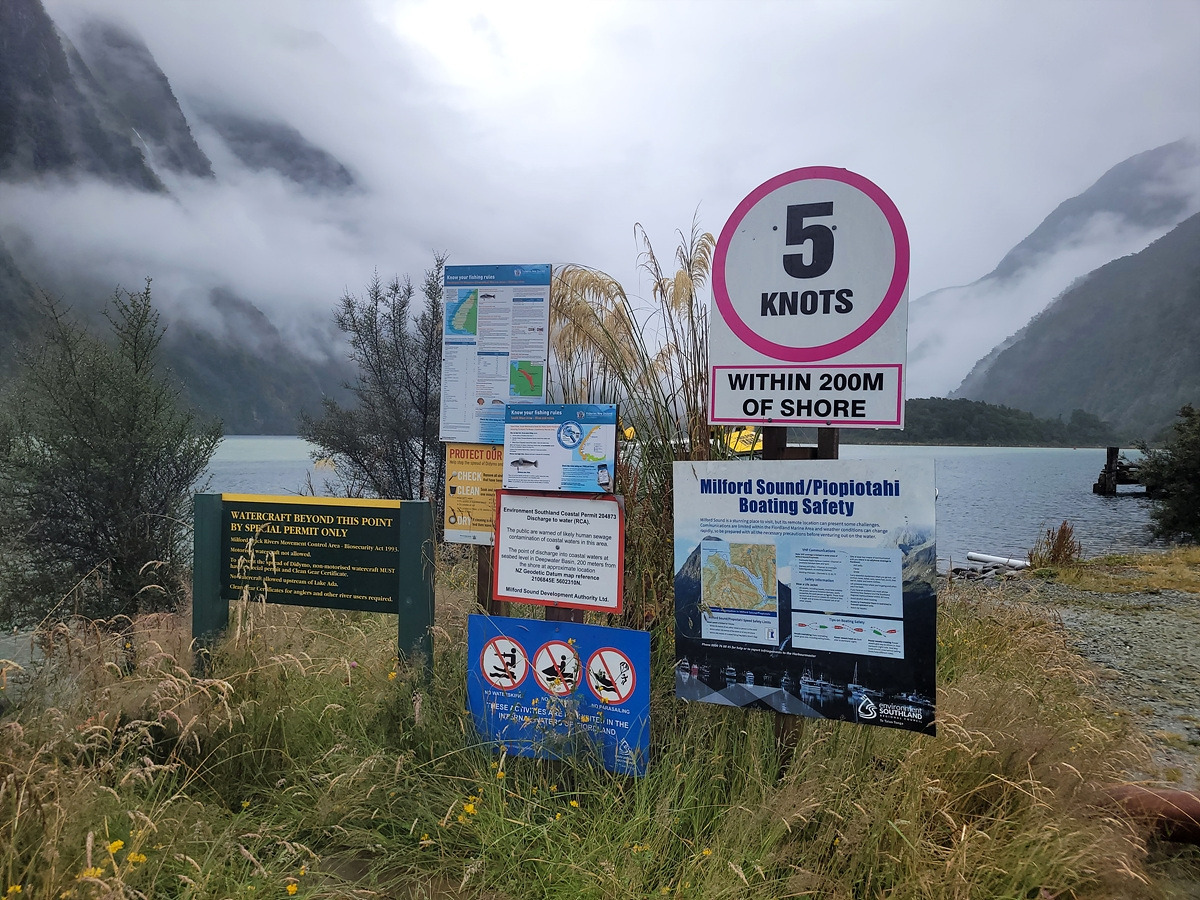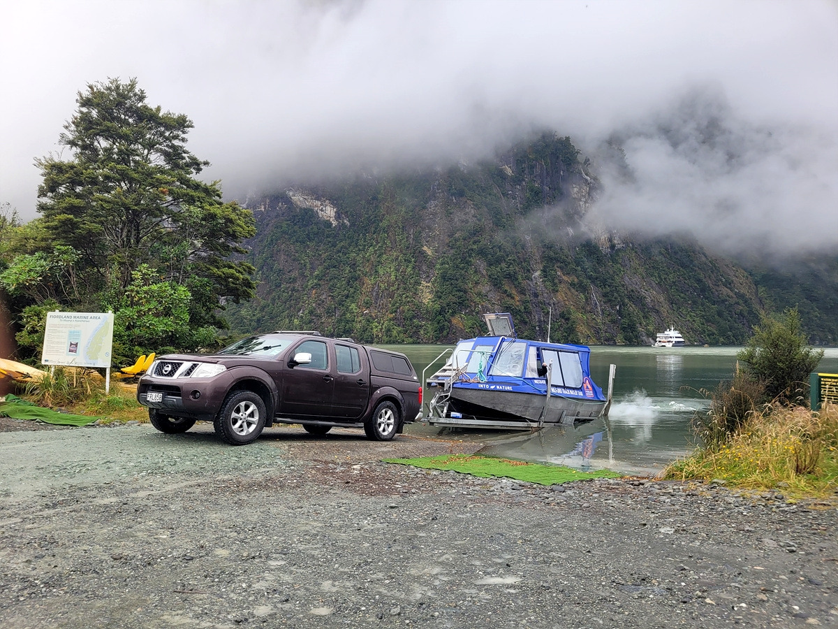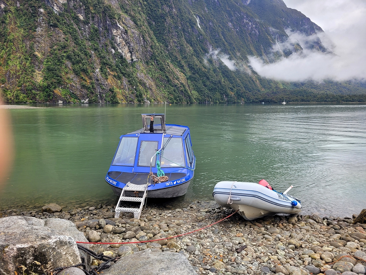 우리를 내려주면 여기서 기다리던 사람들을 싣고 돌아간다. 밀포드 사운드 트래킹은 허가제로 운영되니 여기 있는 사람들은 사전에 허가가 된 사람들이다. 트래킹 복장을 갖추고 비와 피곤에 절어 있는 이 사람들은 3박 4일의 긴 트래킹을 마치고 돌아가는 사람들이다.