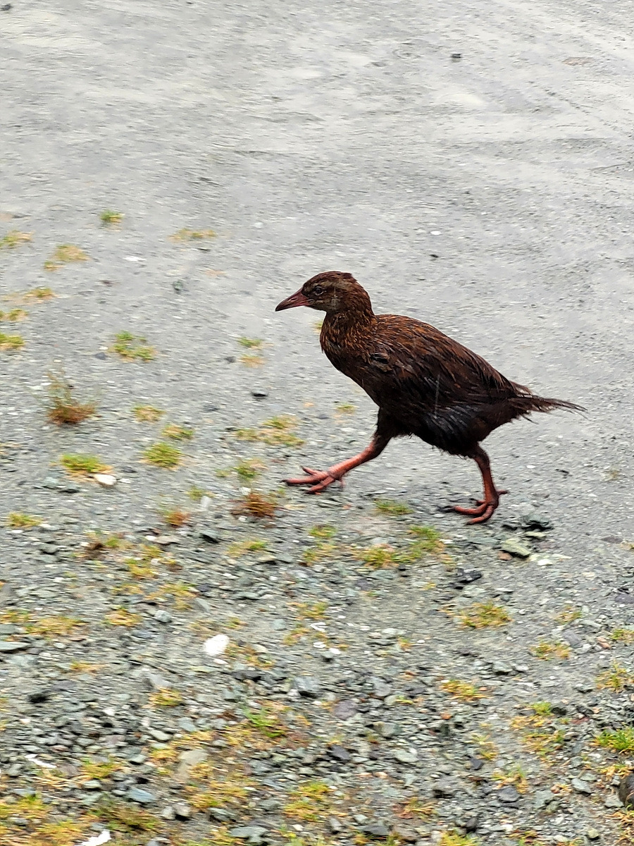 여기 온 이유는 여기서 수상택시를 타야 밀포드 사운드 트랙의 입구... 정확히는 출구인 샌드플라이 포인트로 갈 수 있기 때문이다. 그런데 사람 없는 오래된 건물 하나 앞에 닭같이 생긴 새만 기웃거리고 사람이 안 보인다. Weka라고 하는 이 새는 여기저기 돌아다니면서 이것저것 주워 먹는 야생 조류다.