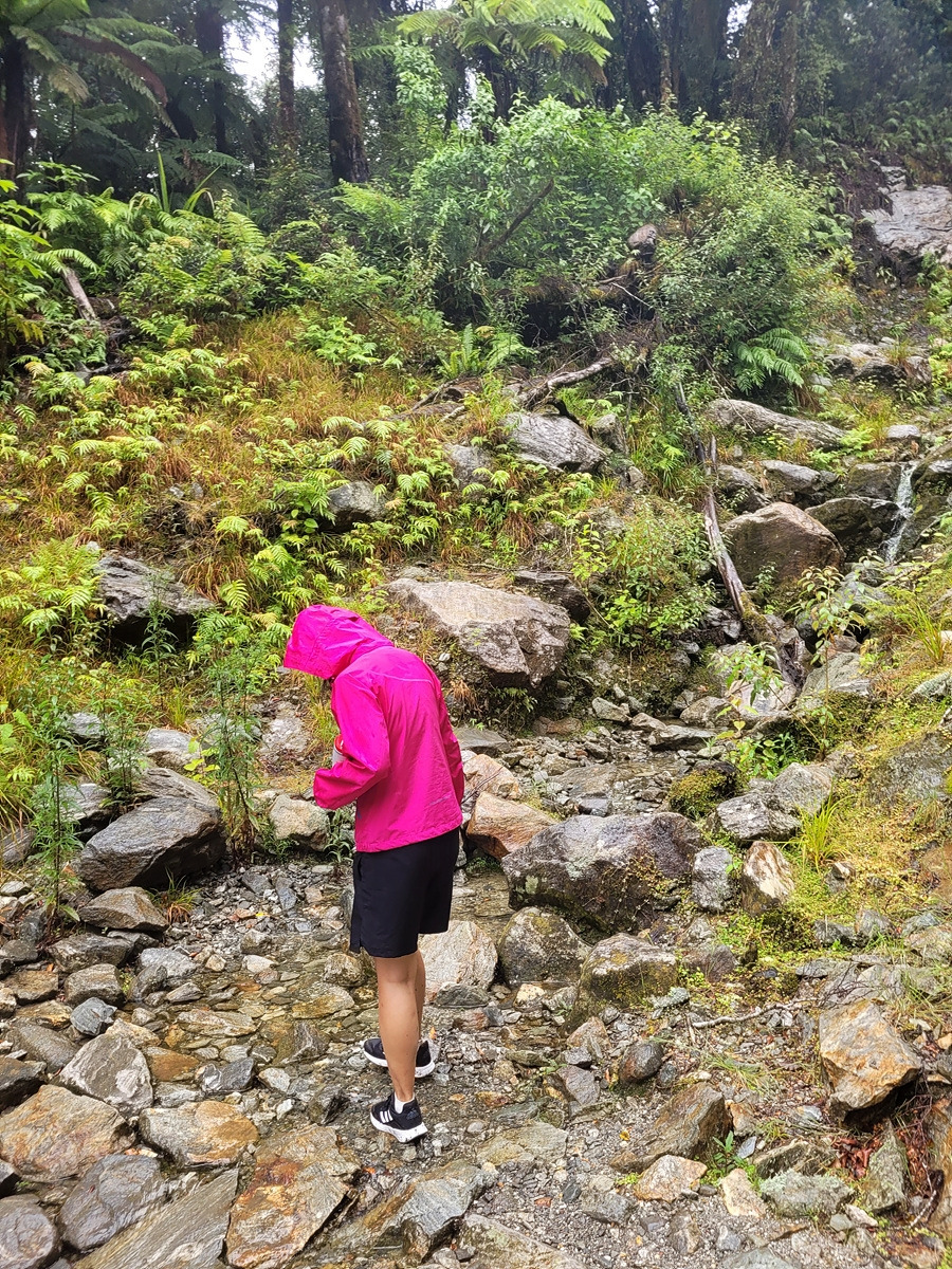 비가 오는데도 생각보다 사람들을 종종 만난다. 엄청 힘들어 보이는 사람들도 보인다. 커다란 배낭을 짊어진 가이드의 인솔 하에 걷는 사람들은 비싼 가이디드 투어를 하는 사람들이고 식량이나 필요한 것들을 가이드가 짊어지고 제대로 된 식사와 샤워, 숙소를 이용한다. 혼자 큰 배낭을 짊어지고 걷는 사람들은 개인 트래커들이다. 이들은 제대로 씻지도 못하고 모든 먹을 것과 침구를 자기가 가지고 걸어야 한다. 지붕과 벽이 있는 대피소 같은 곳에서 잔다고 한다.