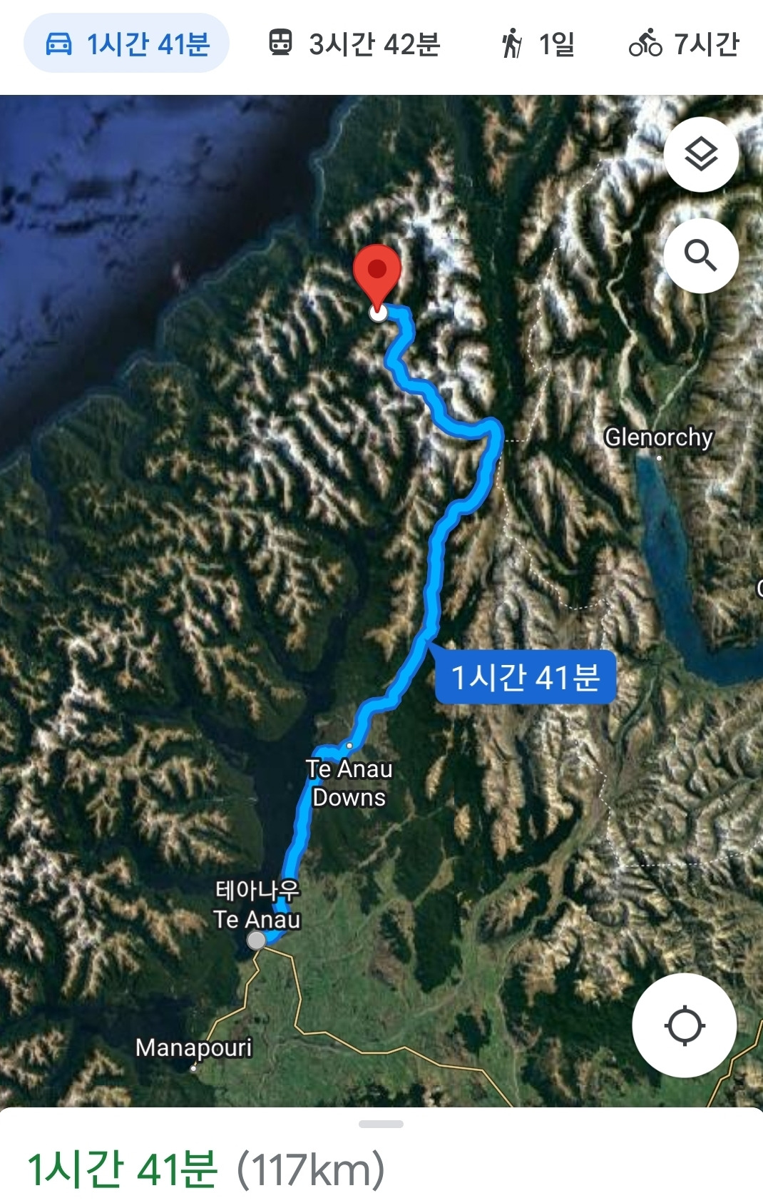 이제 다시 테 아나우로 되돌아가야 한다. 120km... 이 길은 내일 또 와야 한다. 왕복 240km, 세 시간 정도는 낭비다. 다음부터는 이런 경우엔 비싸더라도 그냥 최대한 가까운 숙소에 묵어야겠다.