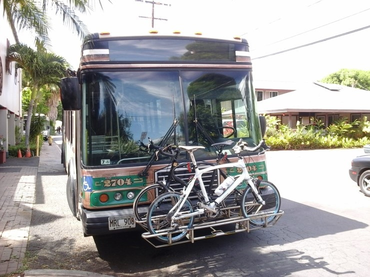오늘은 오후에 비행기를 타고 다시 오아후로 돌아가야 하기 때문에 시간이 없다. 헤이쿠에서 라하이나까지 버스를 타고 가기로 한다. 터미널이라 할 수 있는 카훌루이 쇼핑센터에서 한 번 갈아타면 편하게 갈 수 있다. 그런데, 라하이나 가는 버스가 들어오니 한 사람이 버스 캐리어에 자전거를 후다닥 실어버린다. 우린 다음 버스를 기다려야 했다.