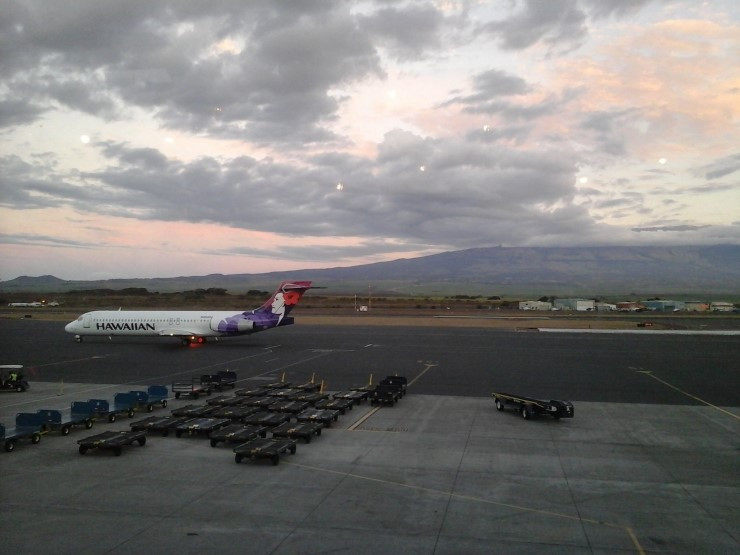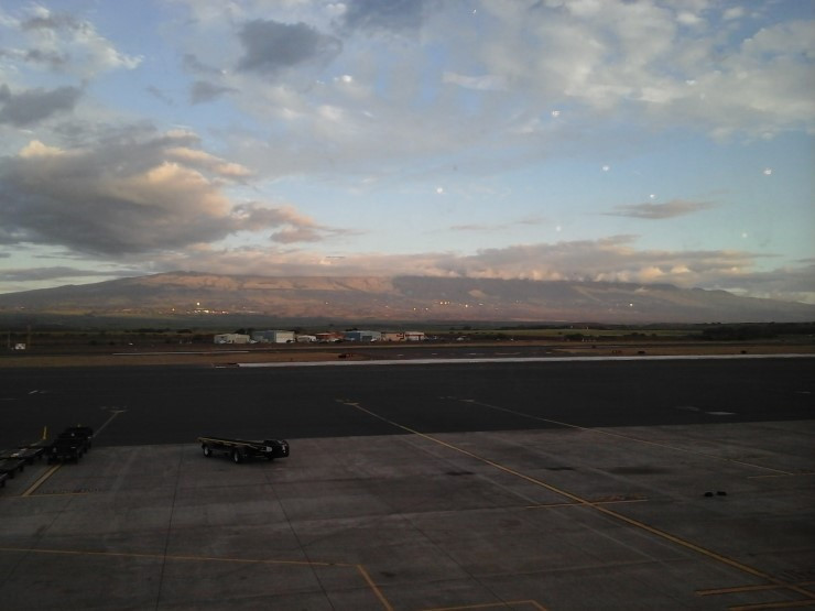 공항에서 호놀룰루로 돌아가는 비행기표를 발권하고 자전거를 대형 수하물로 부친 후, 남는 시간을 공항 바에서 쉰다. 저무는 석양이 산기슭 집들의 유리창에 반사되어 반짝거린다.