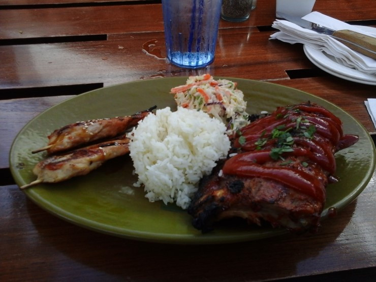 키모스는 음식점을 여러 개 가지고 있는 음식 체인업체 레스토랑인데 키모스 자체는 분점 없이 라하이나에 딱 한 점포만 있다. 잘 보면 바에 효자손이 있는데...