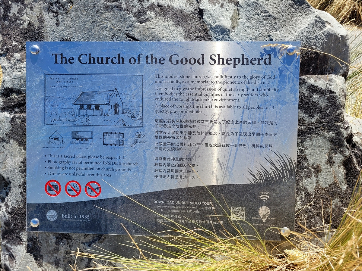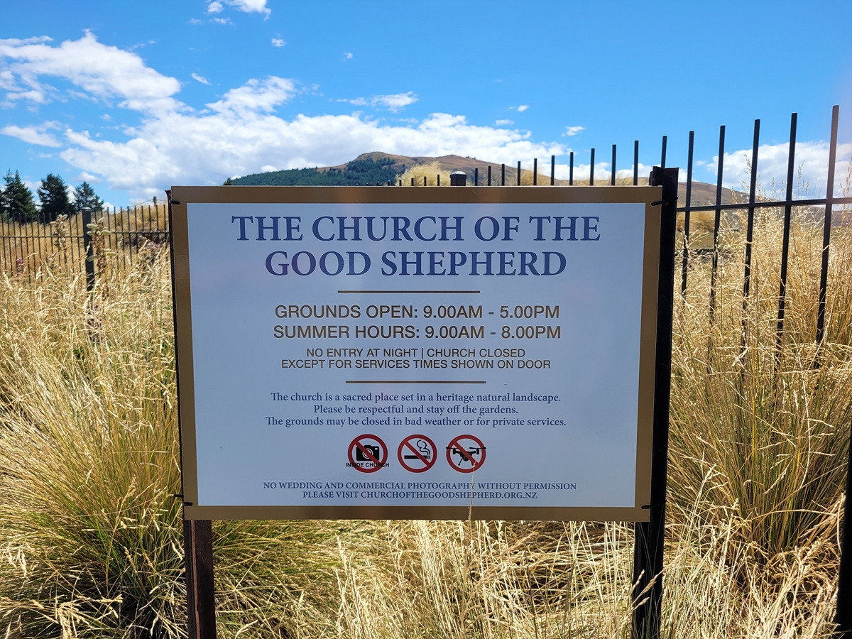 선한 목자 교회의 안내판이다. 사진 찍으러 오는 사람들이 많다. 여기가 뉴질랜드에서 사진 찍는 사람들이 가장 많은 포인트라고 한다.