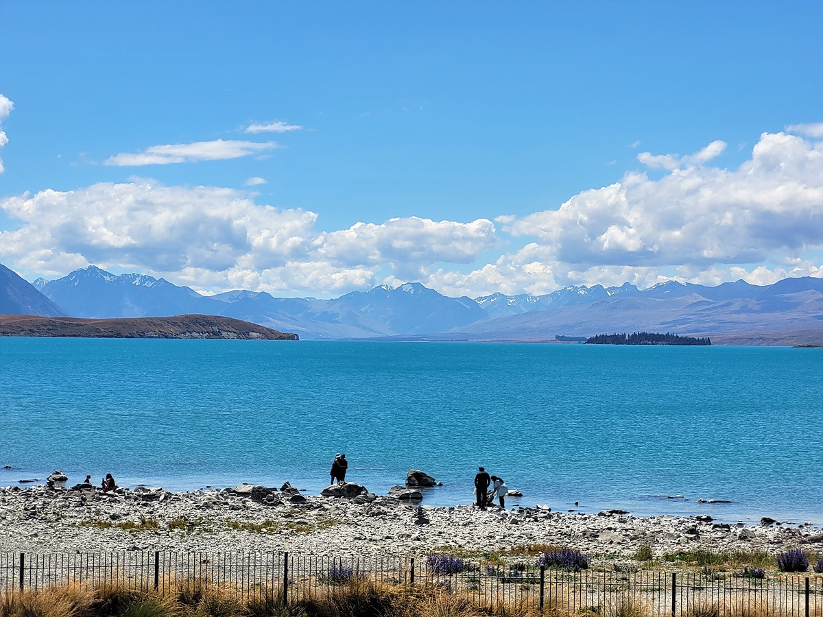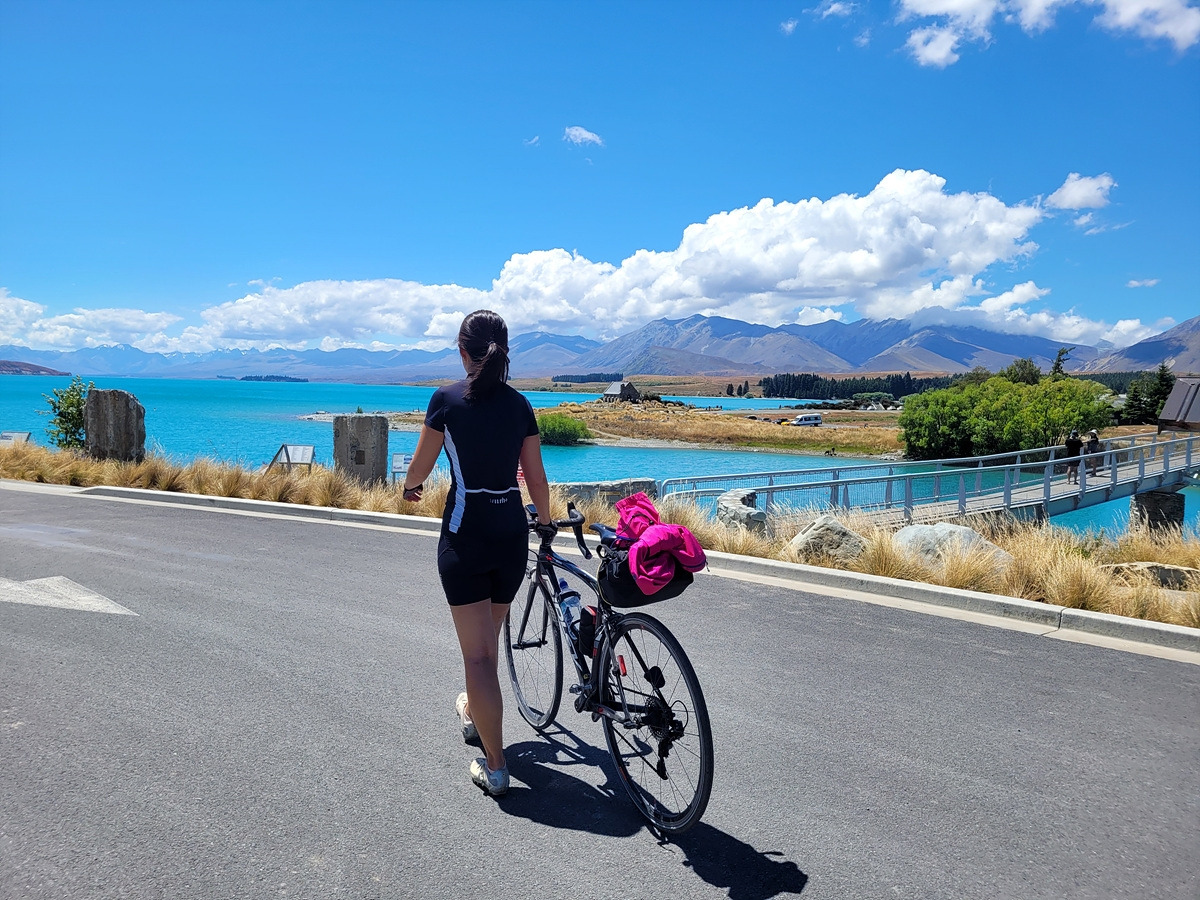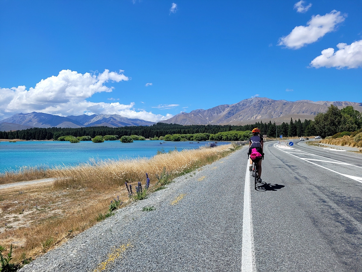 푸카키 호수를 지나면 시몬즈 패스를 넘어 테카포 호수에 도착한다. 우리는 여기서 내린다. 기사님께 감사의 인사를 전하고 자전거를 내려서 다시 앞바퀴를 끼우고 짐을 달아 출발 준비를 한다. 인터버스도 여기서 점심 시간으로 한 시간 정도 쉬어간다.