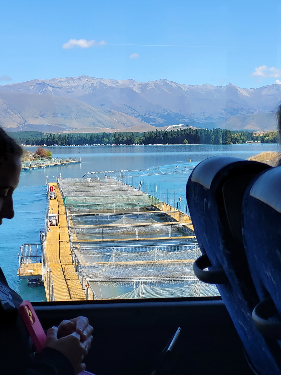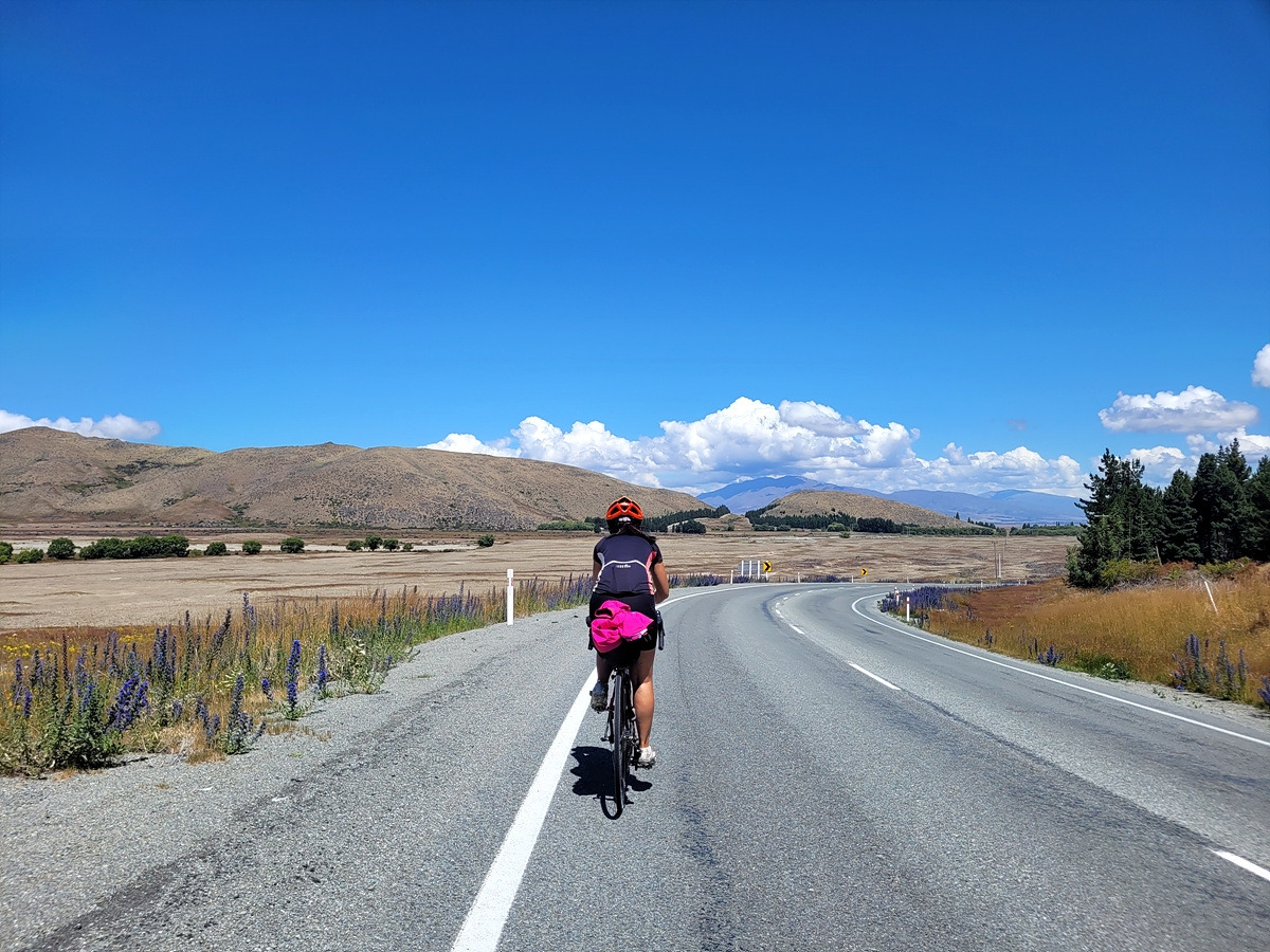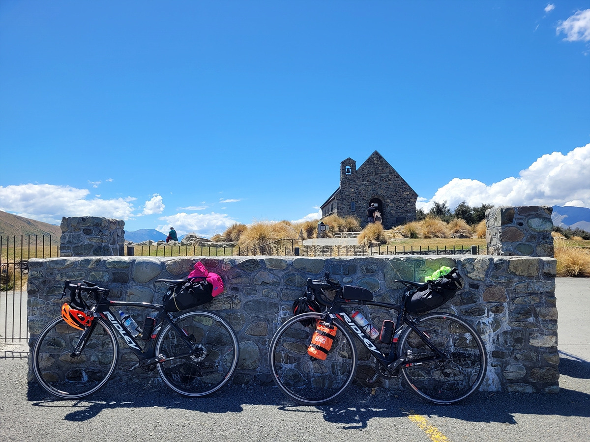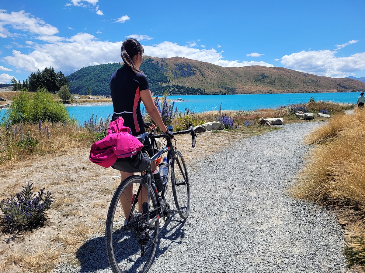 푸카키 호수를 지나면 시몬즈 패스를 넘어 테카포 호수에 도착한다. 우리는 여기서 내린다. 기사님께 감사의 인사를 전하고 자전거를 내려서 다시 앞바퀴를 끼우고 짐을 달아 출발 준비를 한다. 인터버스도 여기서 점심 시간으로 한 시간 정도 쉬어간다.