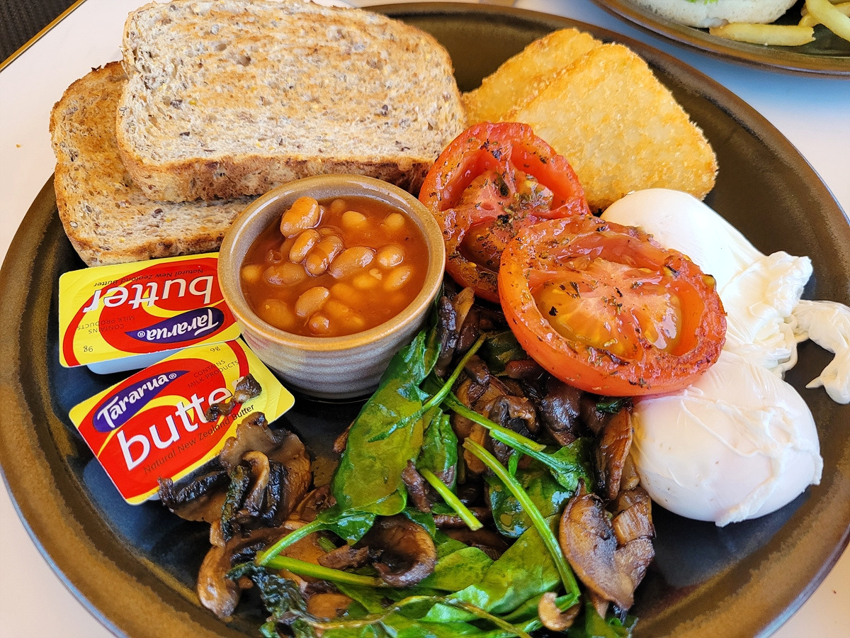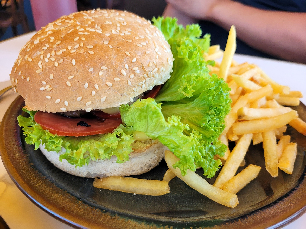 지니님은 아침식사 메뉴로 하고 나는 햄버거다. 버섯볶음과 수란이 빵식을 싫어하는 지니님을 만족시켜준다.