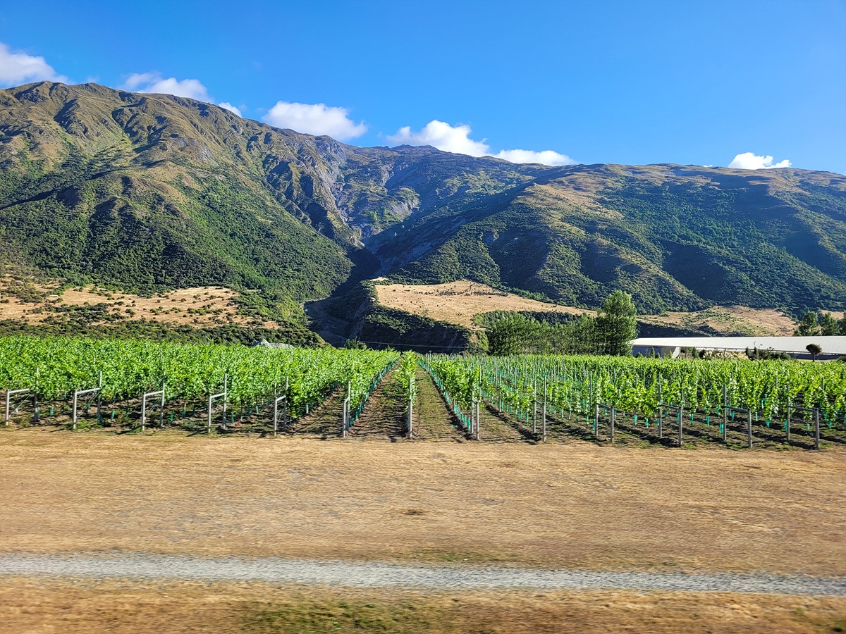 달리다보면 기사님이 꽤 정확한 발음으로 근처 지역에 대한 가이드 방송을 해준다. 내용이 꽤 충실하니 영어듣기가 가능하다면 멍 때리는 것보다 조금이라도 들어두면 좋다. 이 버스는 처음에 크롬웰을 거쳐간다. 센트럴 오타고의 포도밭을 지나간다. 이 많은 포도가 뉴질랜드 대표 와인인 센트럴 오타고의 와인이 된다.