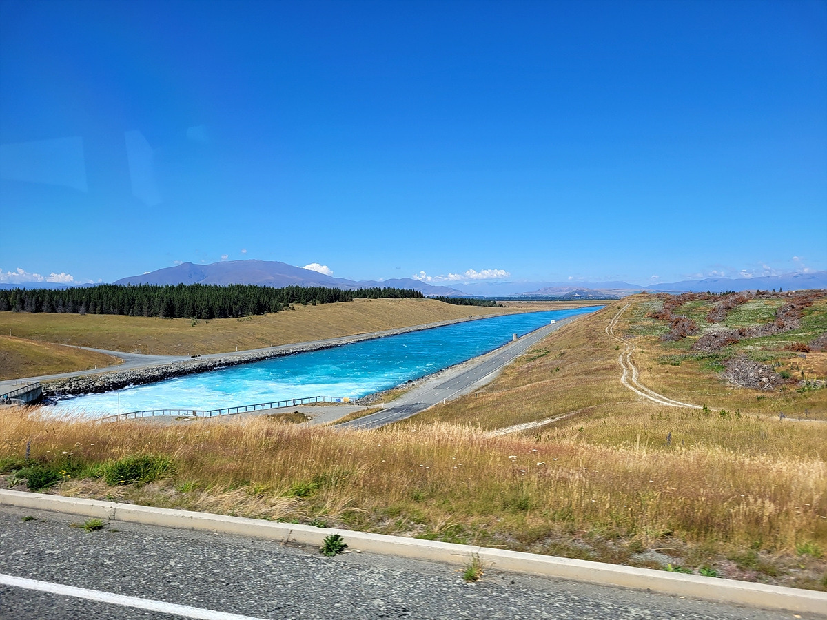 호수와 호수를 잇는 수로들이 보인다. 테카포 호수에서 푸카키 호수를 지나 트위젤 남쪽의 루아타니와 호수까지 수로가 연결되어 있다. 쭉쭉 뻗은 길 자체에 별로 관심이 없어서 저 길을 자전거로 가볼 생각은 못 했다.