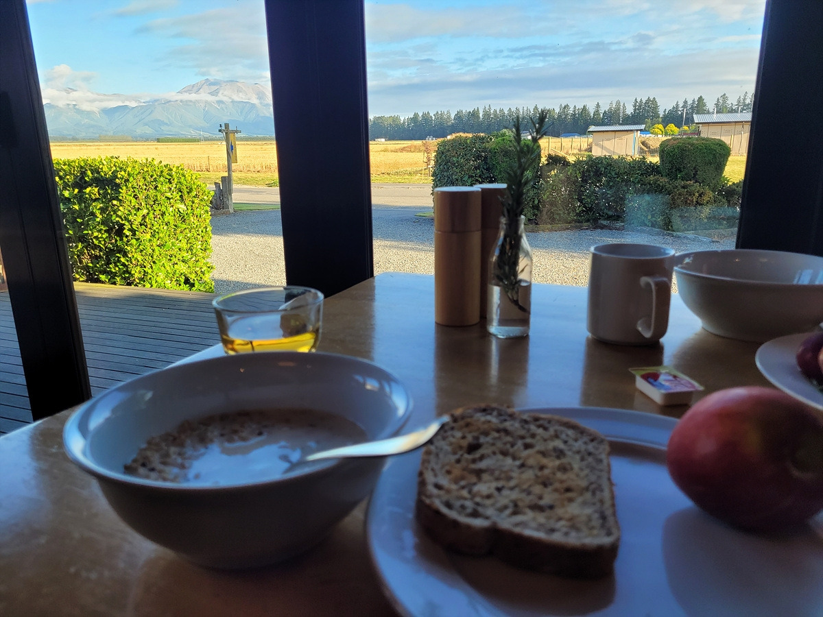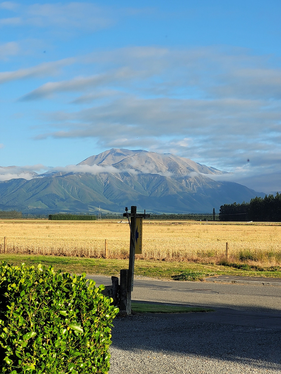 창 밖에 보이는 저 산이 마운트 헛(Mt. Hutt)으로 겨울에 스키를 탈 수 있는 산이다. 꽤 멀어 보이는데도 이 마을이 저 스키장에서 가장 가까운 마을인 듯하다.