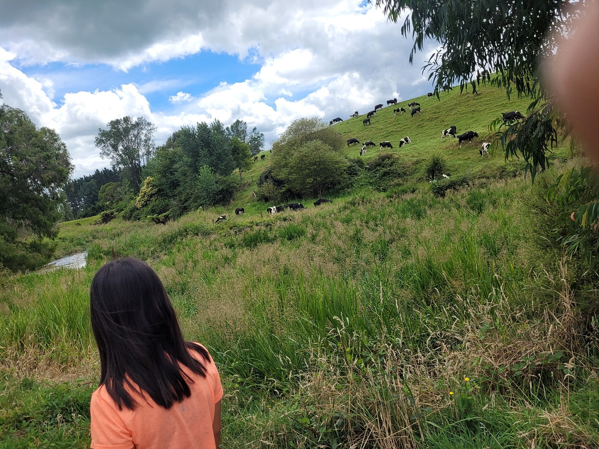 지니님 앞으로 목장 언덕이 보인다. 자세히 보니 소들이 풀을 뜯고 있다.