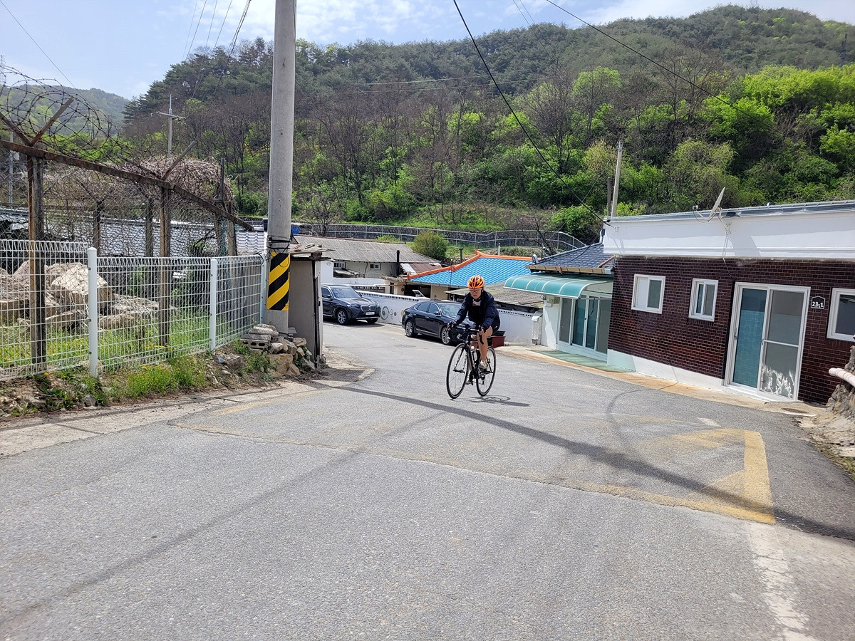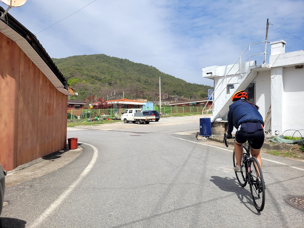 여기서부터 오르막길이 시작된다. 나름 새로 직선화 공사한 신작로라 심하게 가파르지 않고 포장 상태도 좋다.