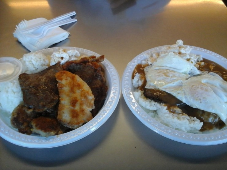 가는 길에 오바마도 즐겨먹었다는 레인보우 드라이브인(Rainbow Drive-in)에서 바비큐 믹스와 로코모코로 아침을 먹