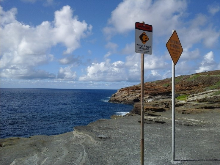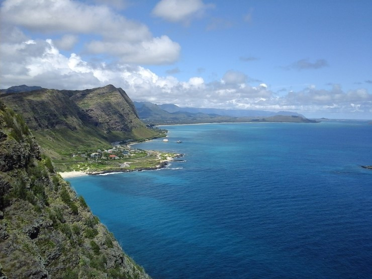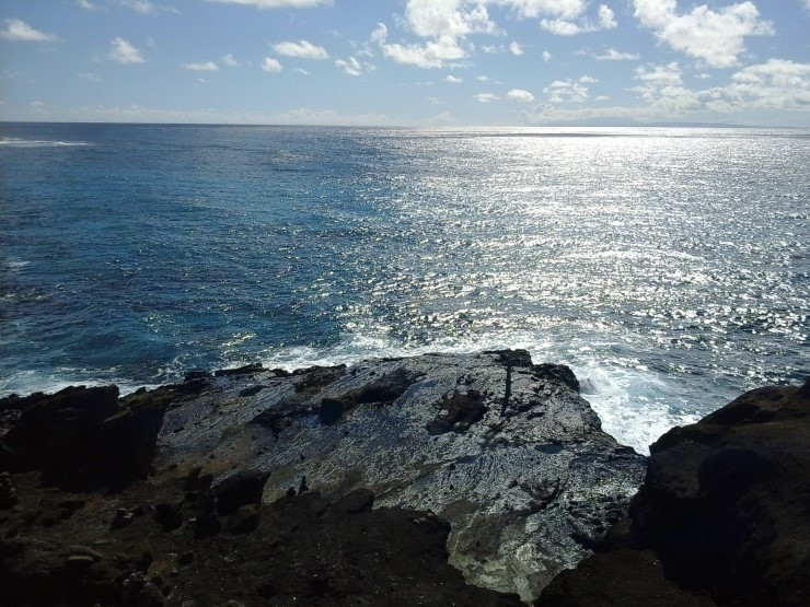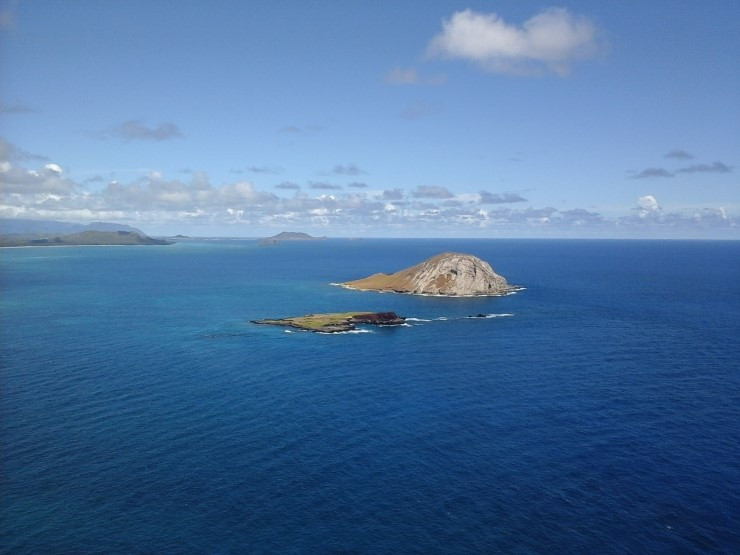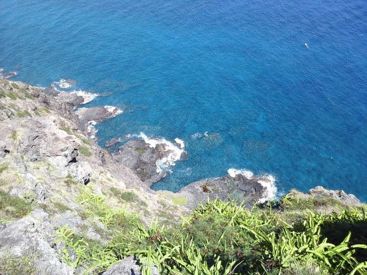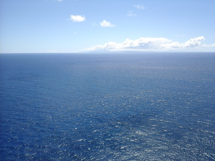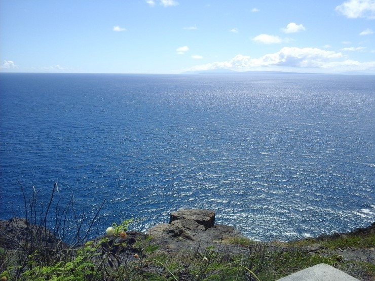 멀리 보이는 섬은 하와이의 다른 큰 섬인 몰로카이다. 저 몰로카이 뒤로 마우이가 있고 그 뒤로 빅아일랜드가 있다.