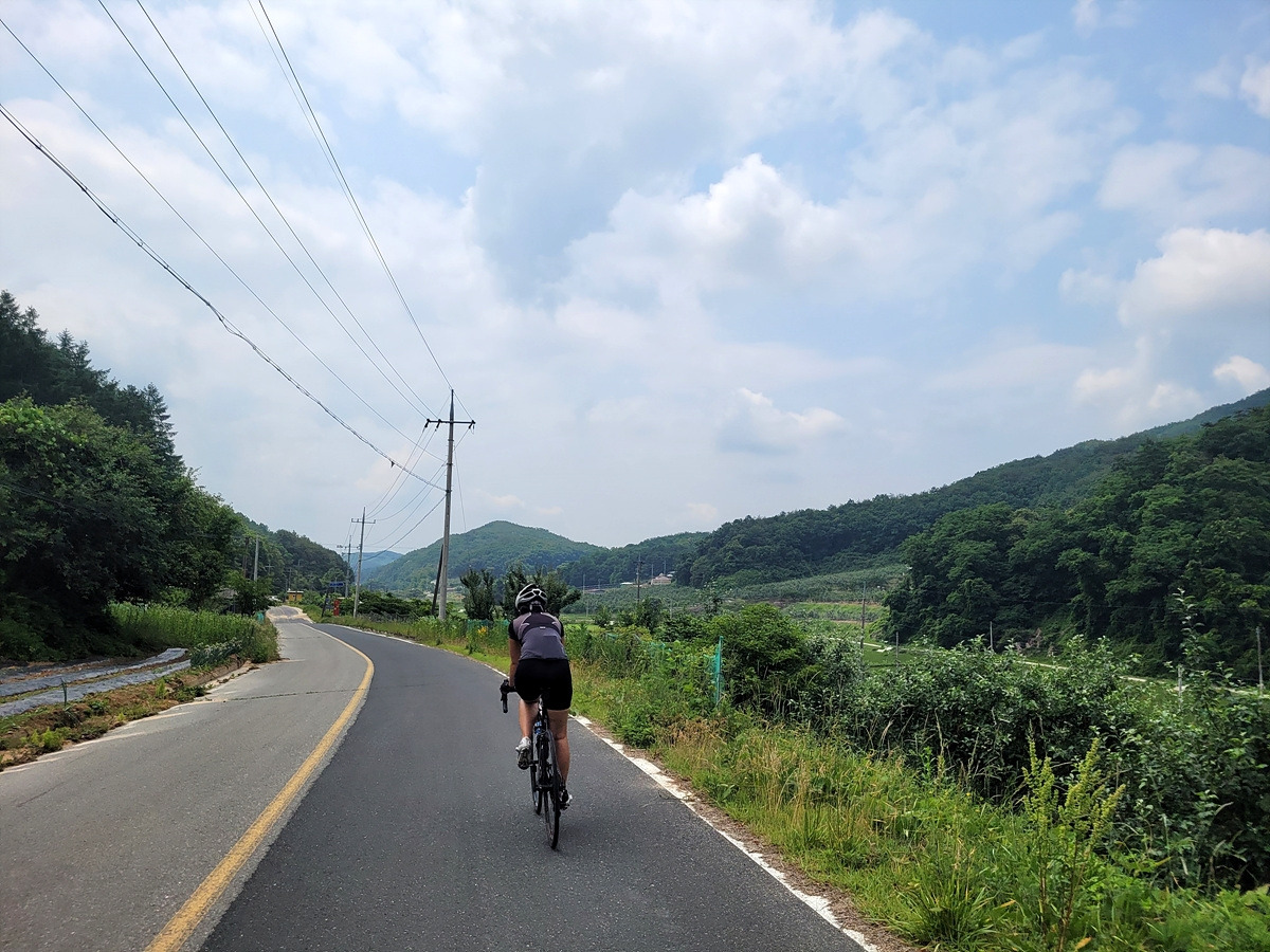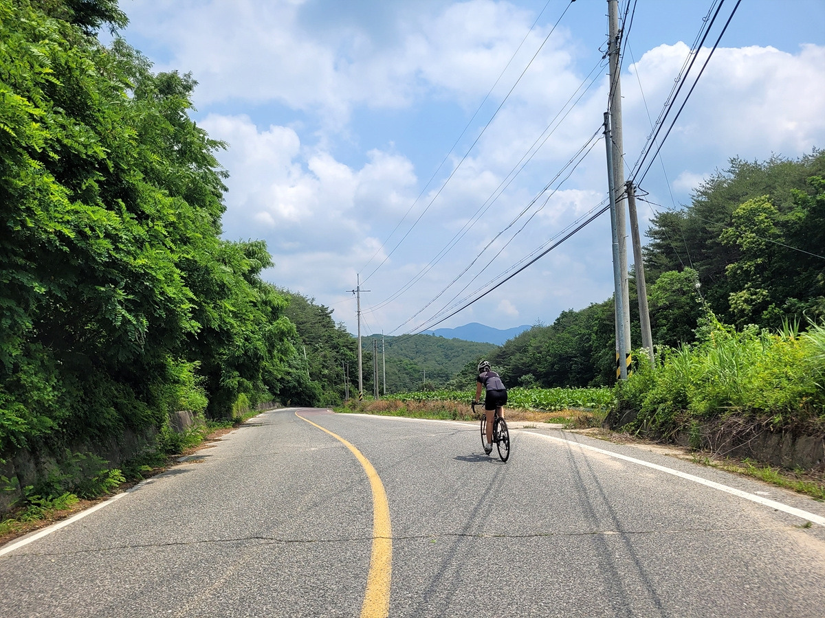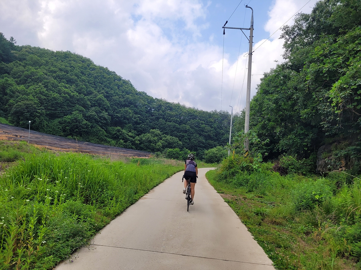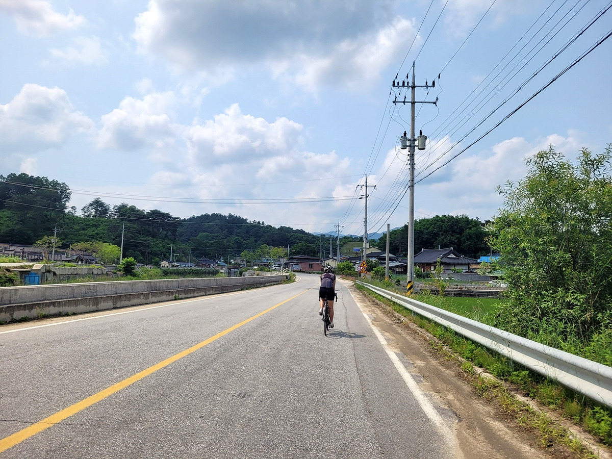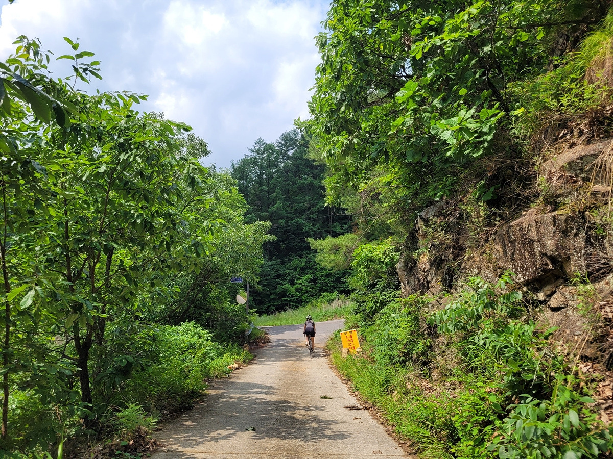 한참 달리다 보면 원천 1리에서 길을 선택해야 한다. 여기서 오른쪽으로 가면 얼마 전에 갔던 원천삼거리가 나온다. 왼쪽으로 가면 언덕길은 있지만 계속 작은 길을 이어 달릴 수 있다. 왼쪽으로 가보자.