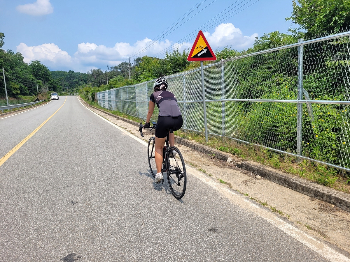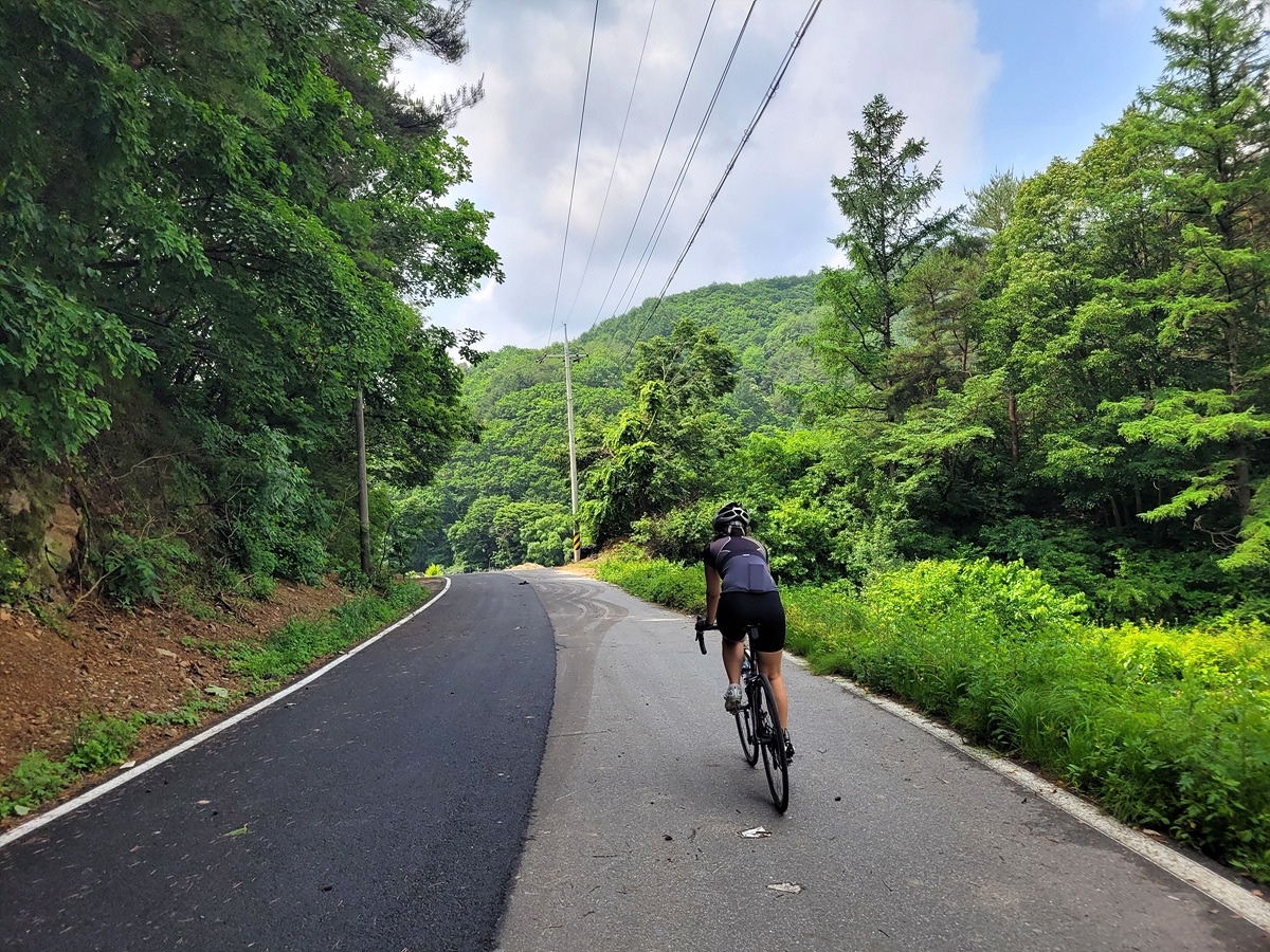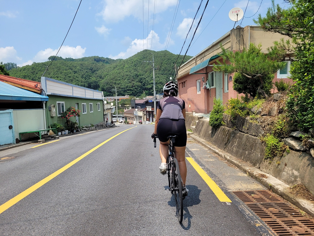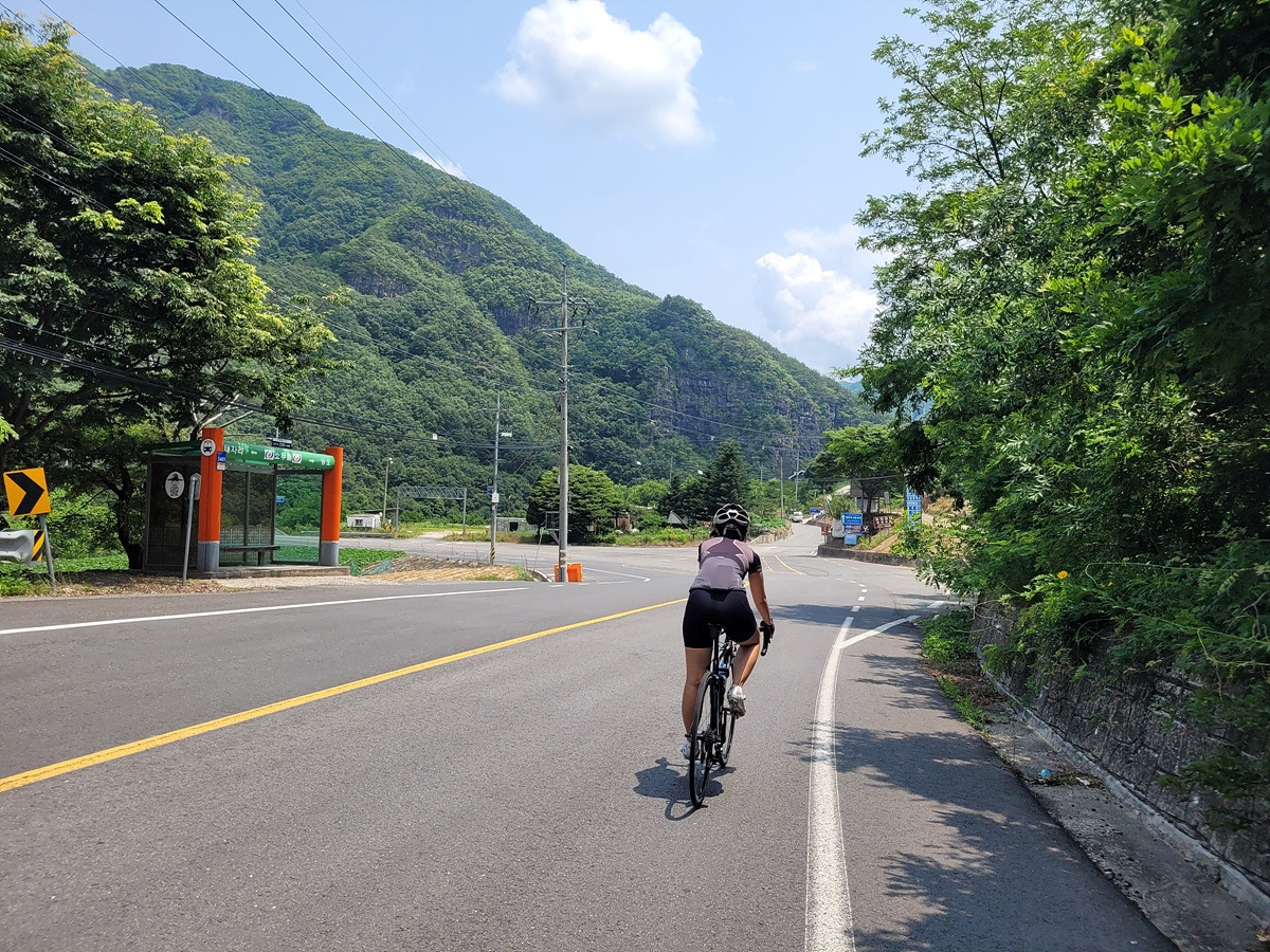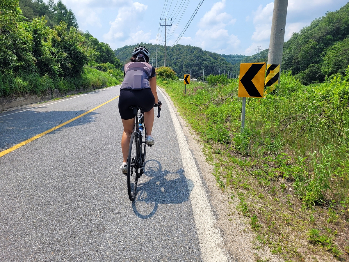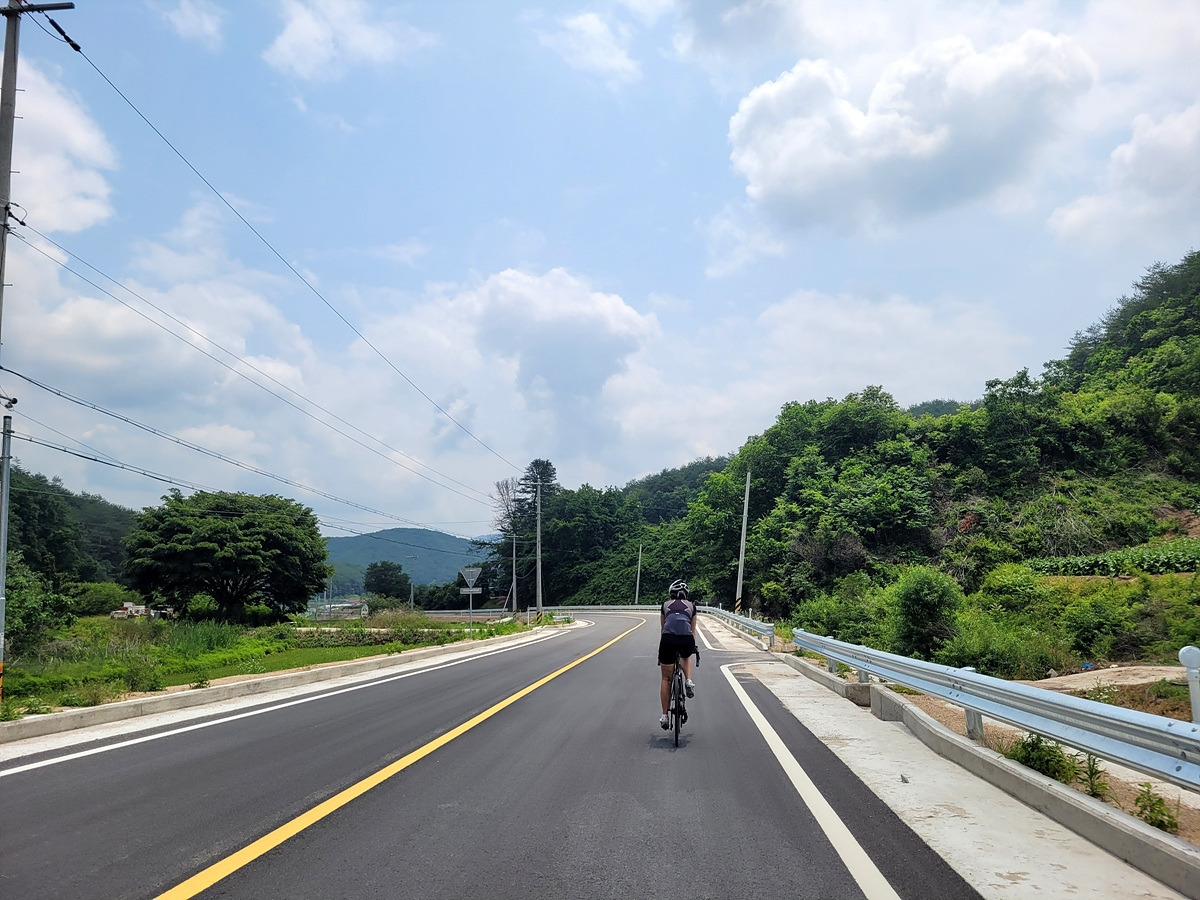 한참 달리다 보면 원천 1리에서 길을 선택해야 한다. 여기서 오른쪽으로 가면 얼마 전에 갔던 원천삼거리가 나온다. 왼쪽으로 가면 언덕길은 있지만 계속 작은 길을 이어 달릴 수 있다. 왼쪽으로 가보자.