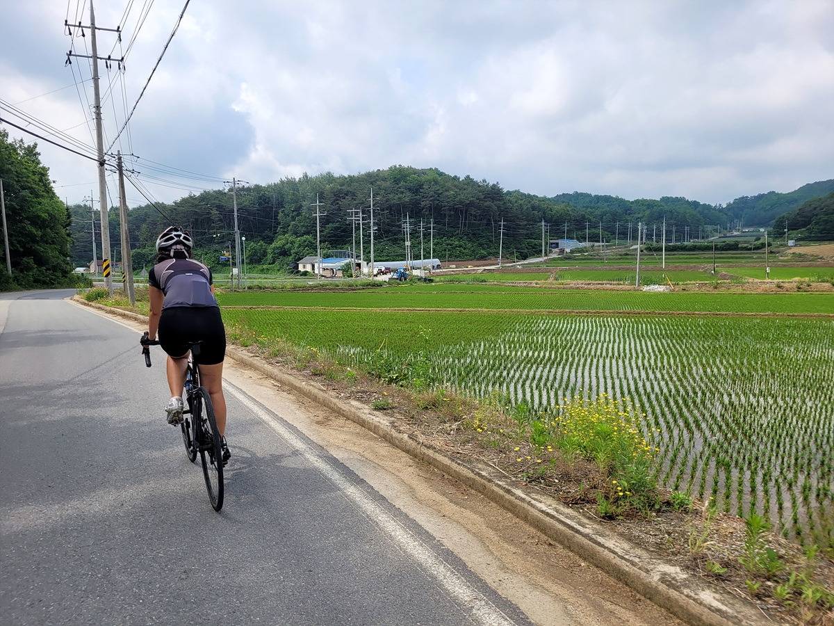 모내기한 벼들이 파릇하게 자라는 경북의 시골 풍경이 펼쳐지는 길이다. 일주일에 한 번씩 오니 경북의 계절 변화가 느껴진다.