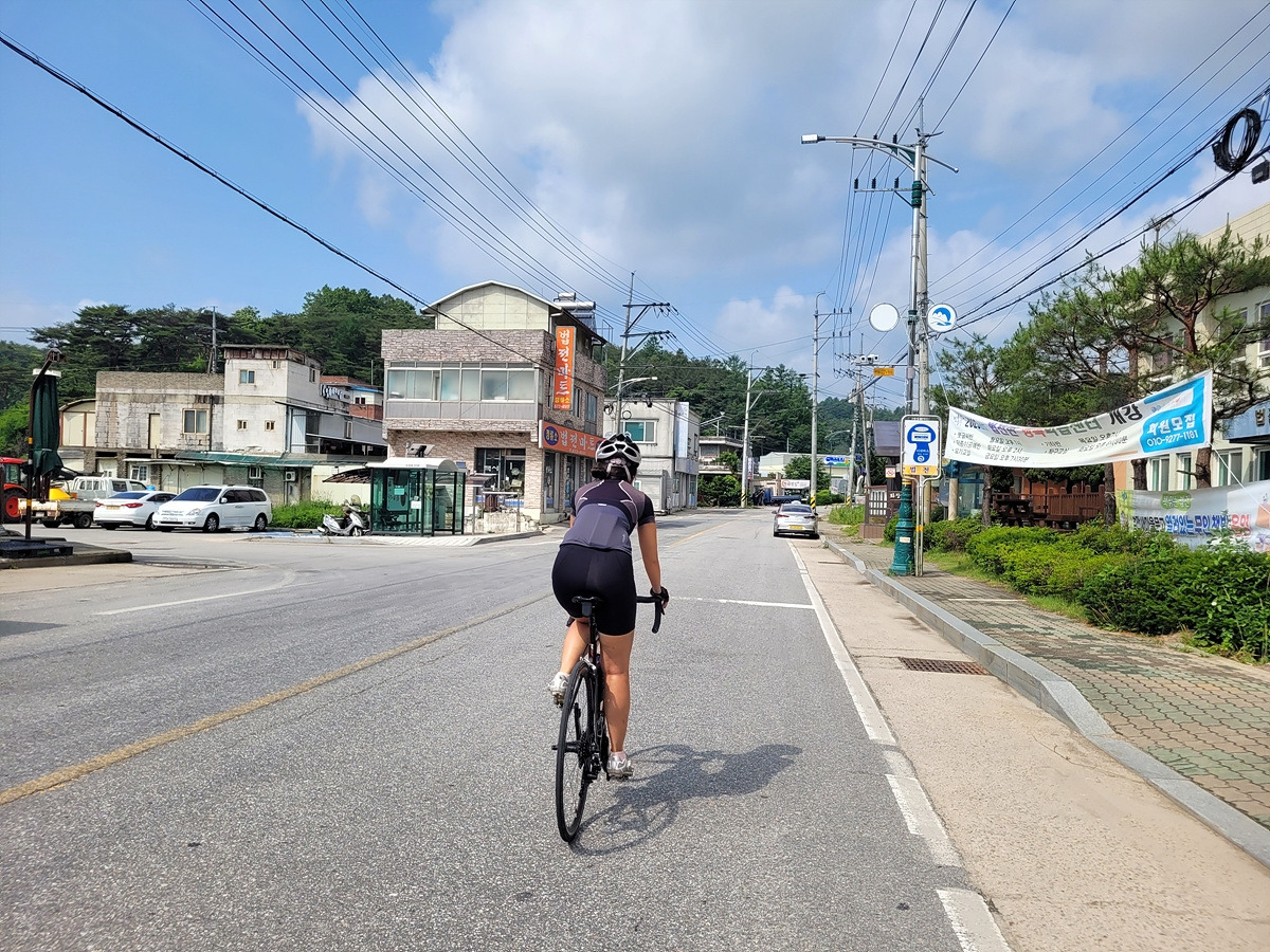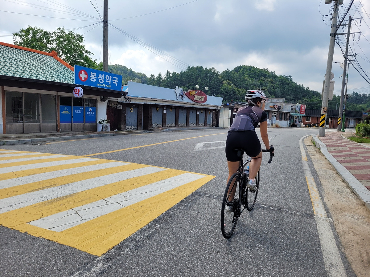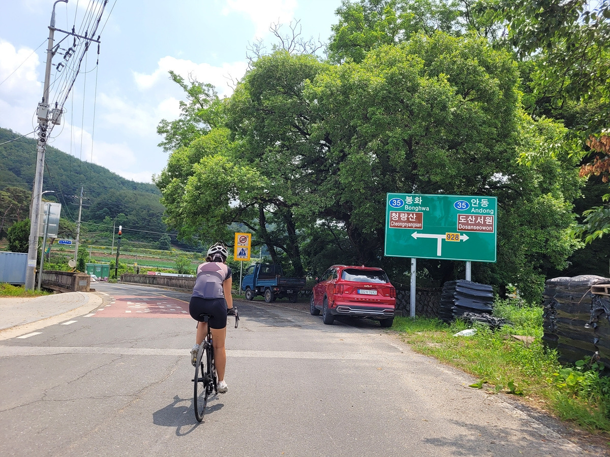 우리는 어지간해서는 차들이 고속으로 달려대는 위험한 국도를 달리지 않는다. 법전교차로에서 봉화 방향으로 가는 36번 국도로 올라가기 직전에 분리대로 나뉜 샛길이 있다. 법전 1리, 서망과 법전교차로 사이에는 샛길이 없으니 자전거를 탈 때 36번 국도를 달리고 싶지 않다면 무조건 법전면사무소 앞을 통과해야 한다.