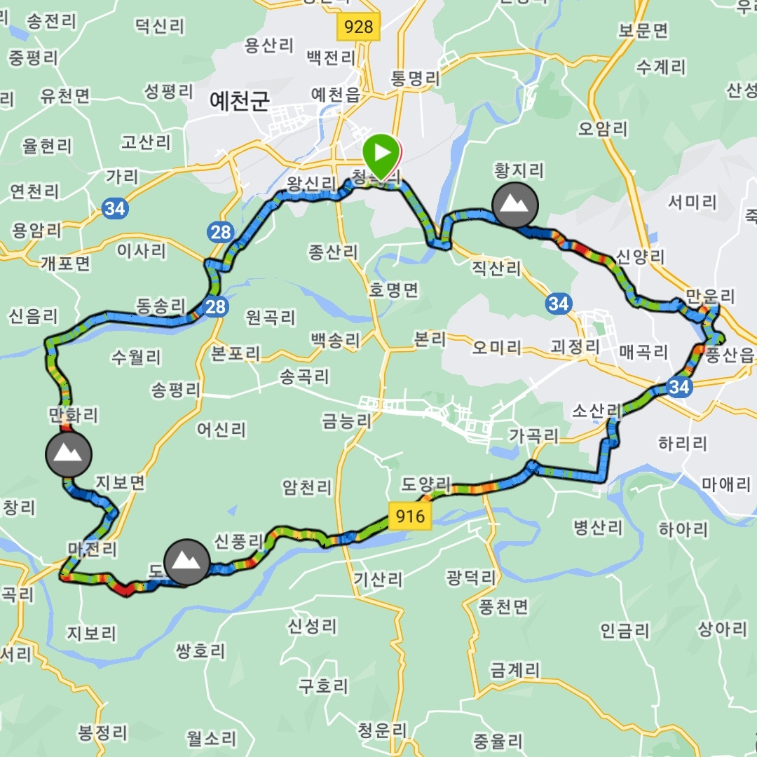 오늘 달리는 거리도 그리 길지 않은데 이런 저수지뷰라도 즐겨야 하지 않을까 싶어서 둘러둘러 다니는 코스를 짜본 것이다. 만운지를 크게 돌아서 풍산으로 간다.